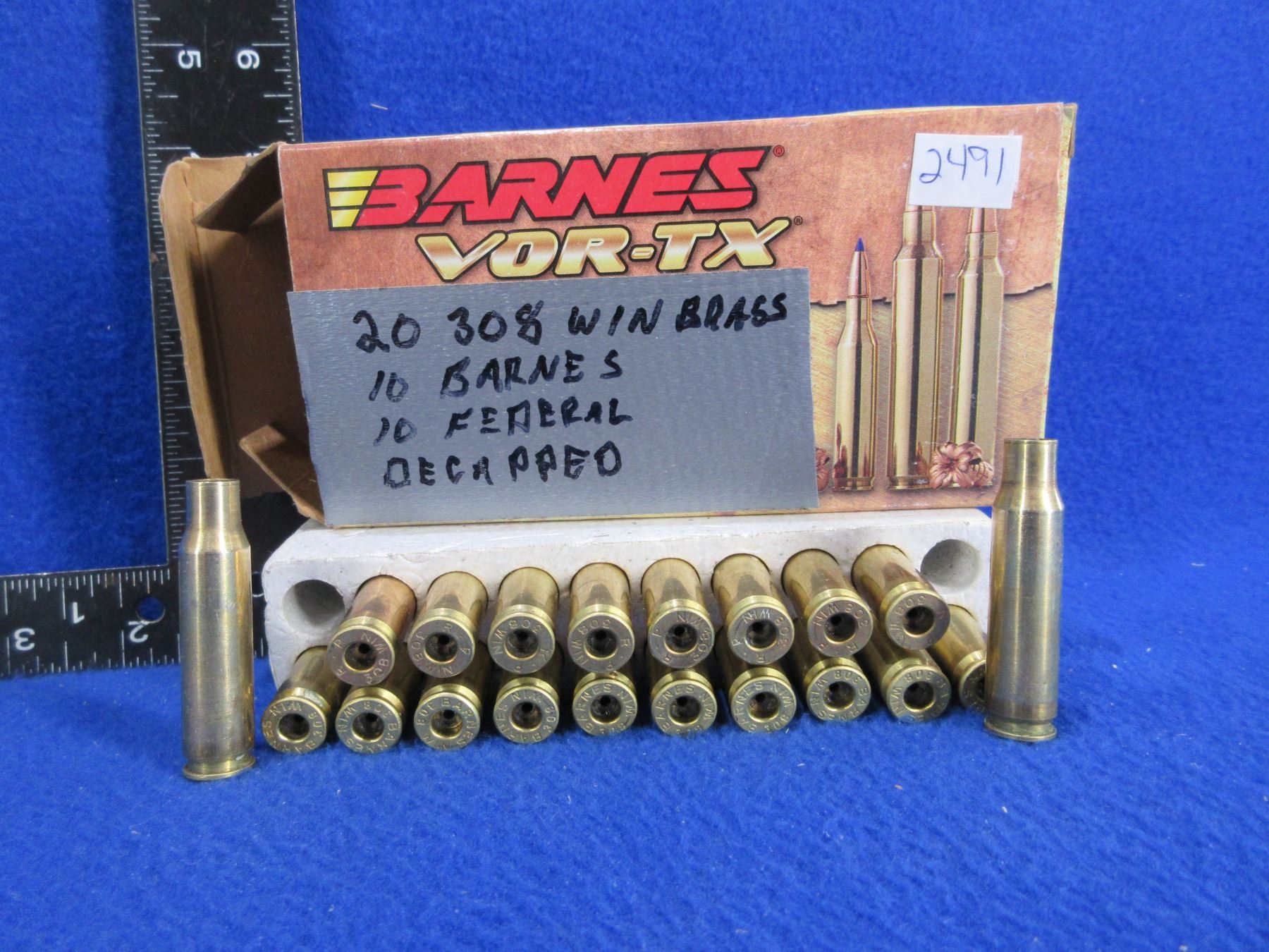 Brass Only - 308 Win. Deprimed - Box of 20 (10 Barnes Headstamp and 10 R P Headstamp)