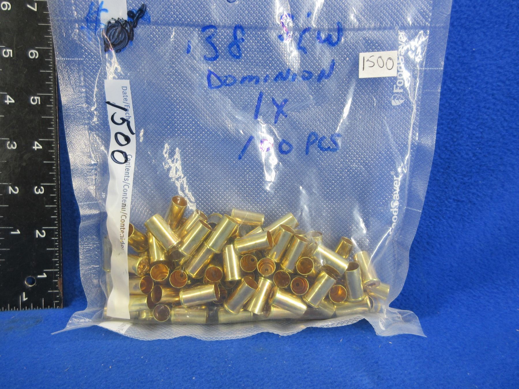 Brass Only - 38 S&W Once Fired Deprimed Dominion Headstamp - Bag of 100