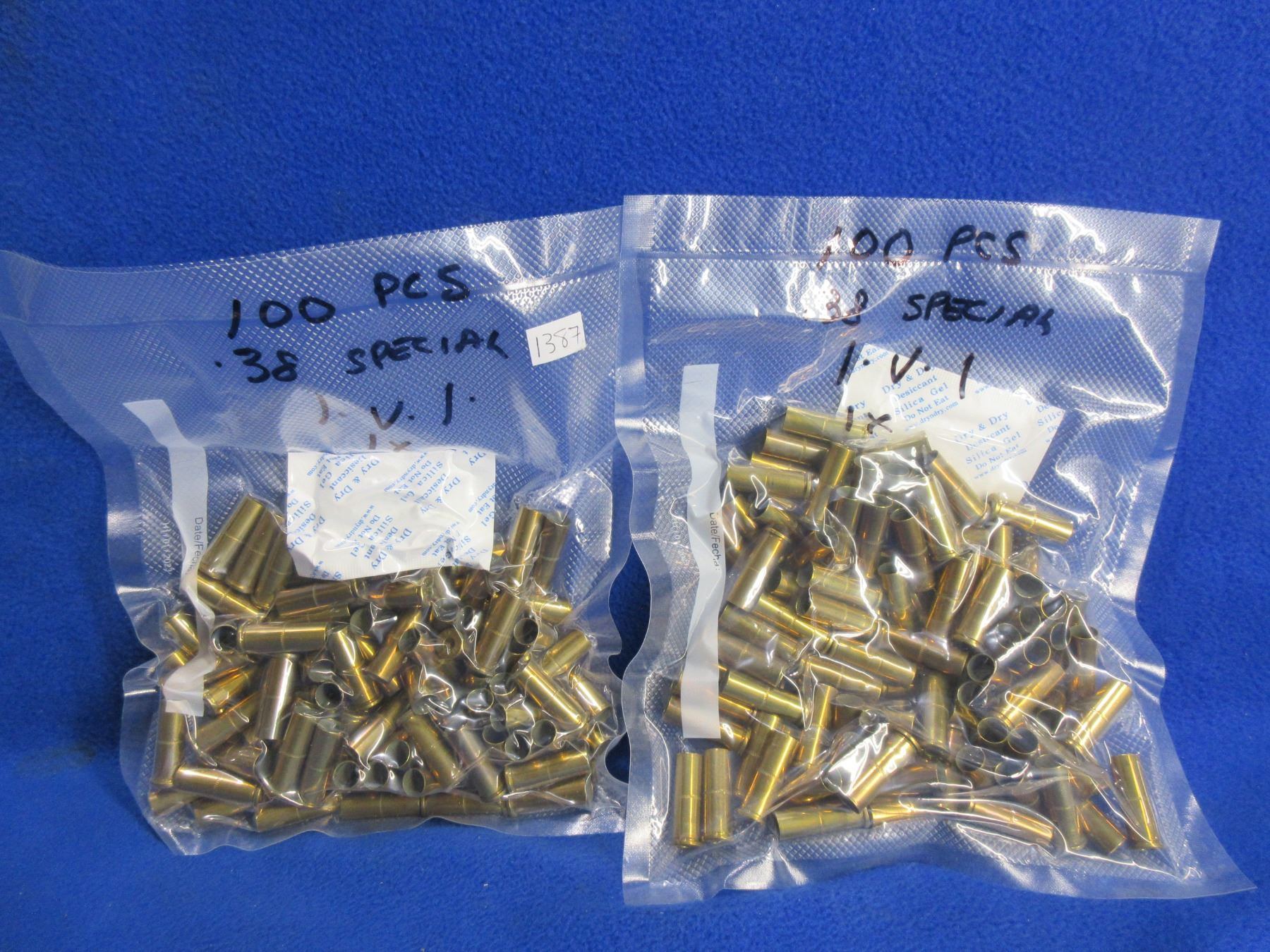 Brass Only - 38 Spl 1x Fired IVI Headstamp Deprimed - 2 Bags of 100