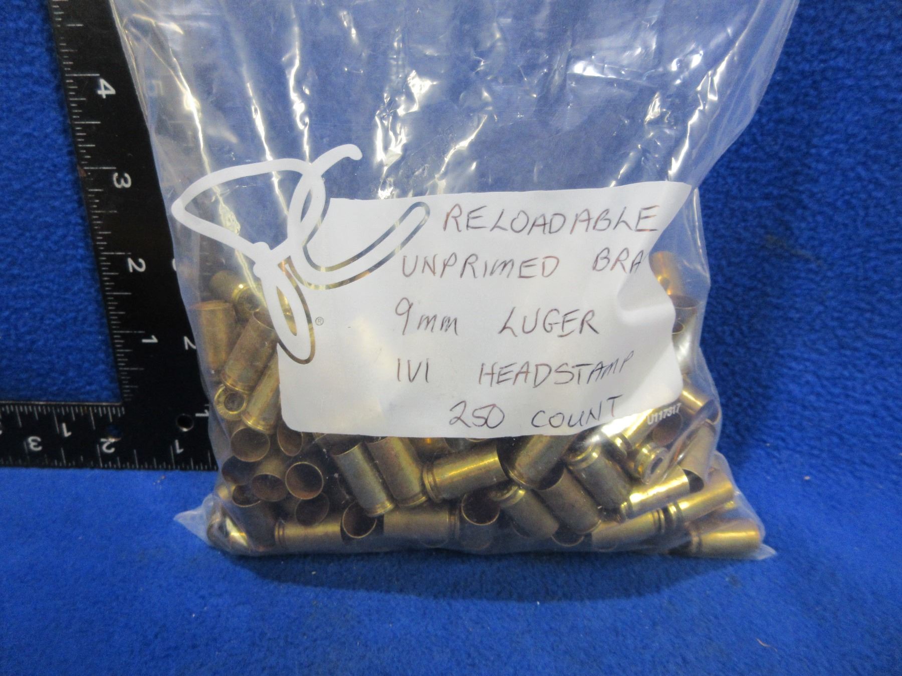 Brass Only - 9MM Luger Deprimed IVI Headstamp - Bag of Approx. 250