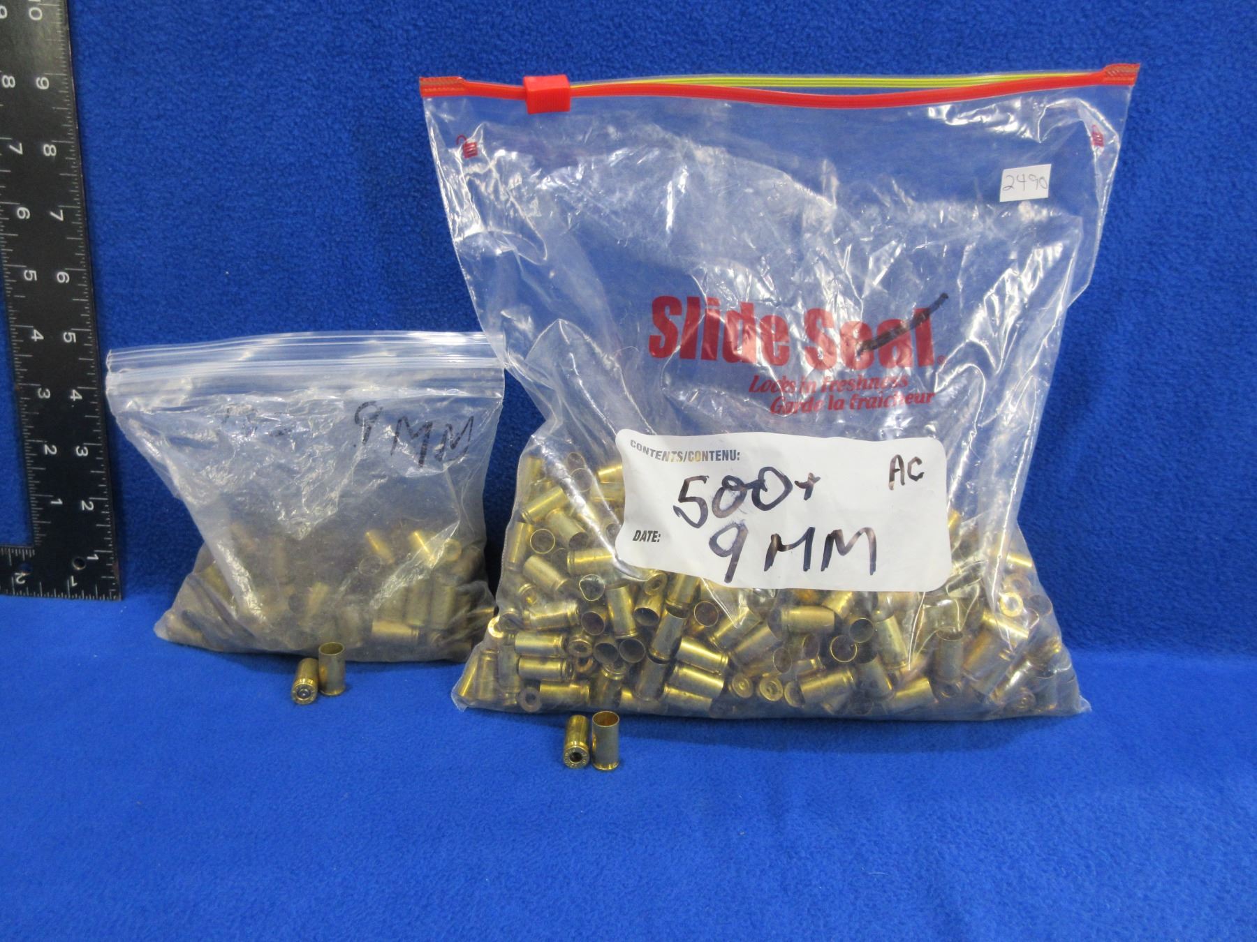 Brass Only - 9MM Luger Unprimed and Deprimed - Bag of Approx. 500 (Deprimed), Bag of Approx. 100 (Not Deprimed)