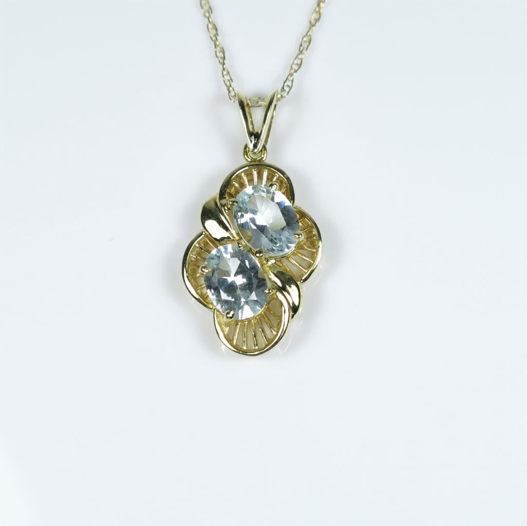 featuring 2 oval cut Aquamarines weighing approx. 4.00 carats set in 14 karat yellow gold setting.