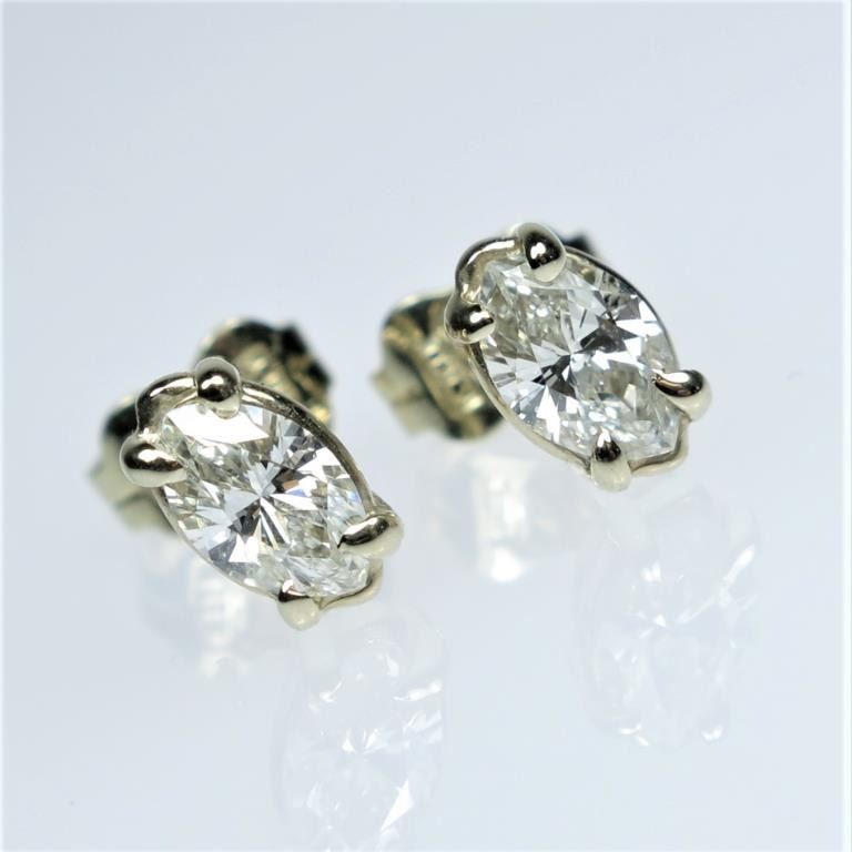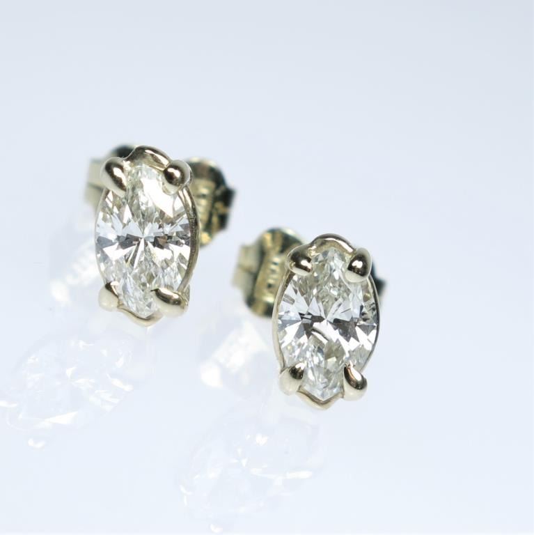 featuring 2 matching fine marquise cut Diamonds weighing approx. 0.65-70 carats with H-I colors and VS clarity set in 14 karat yellow gold settings. Retail $3,000-$4,000