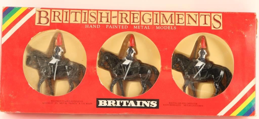 Circa 1980's hand painted metal figures of Royal Horse Guards, 3 total in original box. #7229