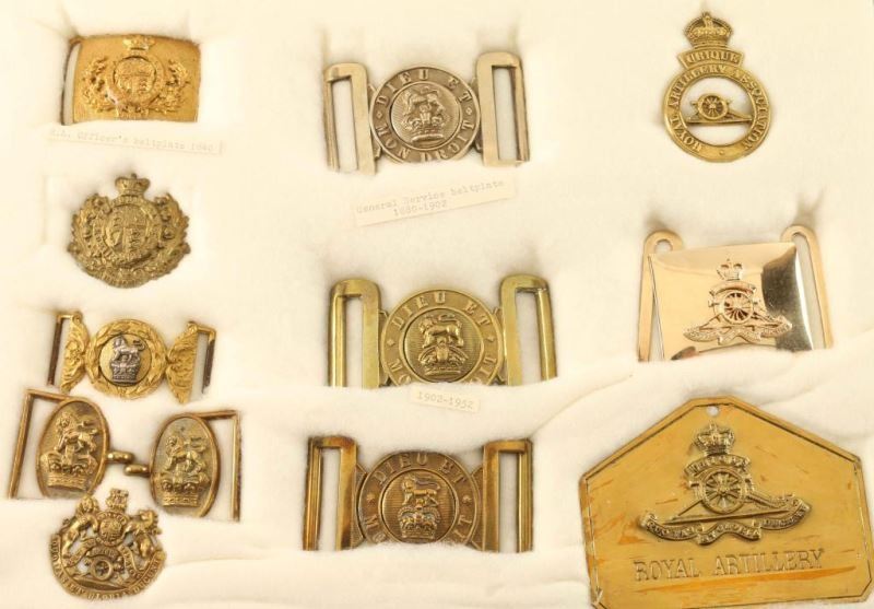 (3)British Edwardian or Georgian King's Crown Service Dress Belt Buckles, RA Officers belt plate and others. From The John F Sukey Collection