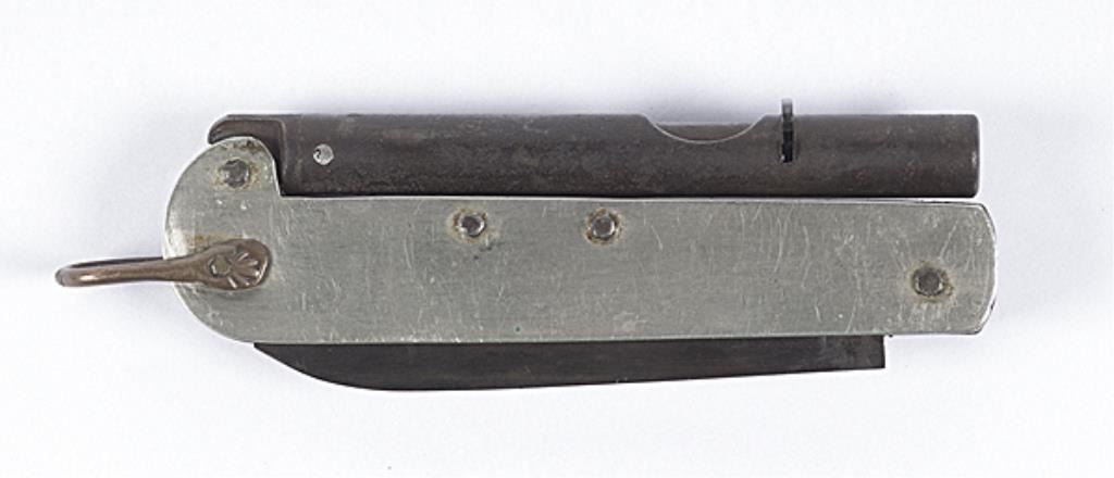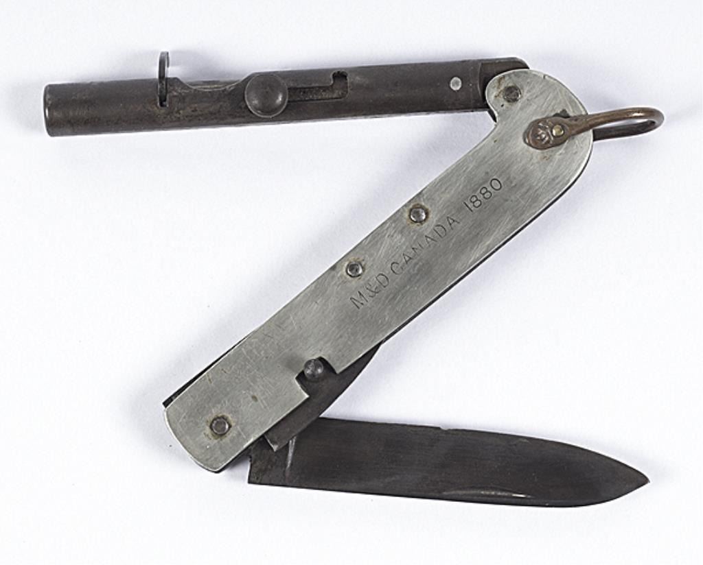 British Navy M&D Canada 1880 Knife Pistol, Standard British Navy style utility Knife with a .22 caliber gun barrel instead of marlin spike. Est:$300-500