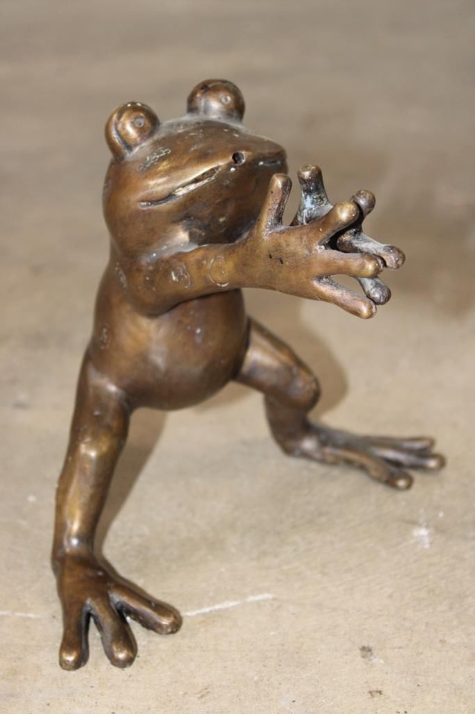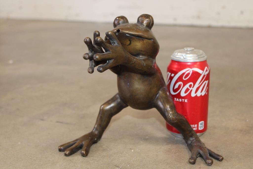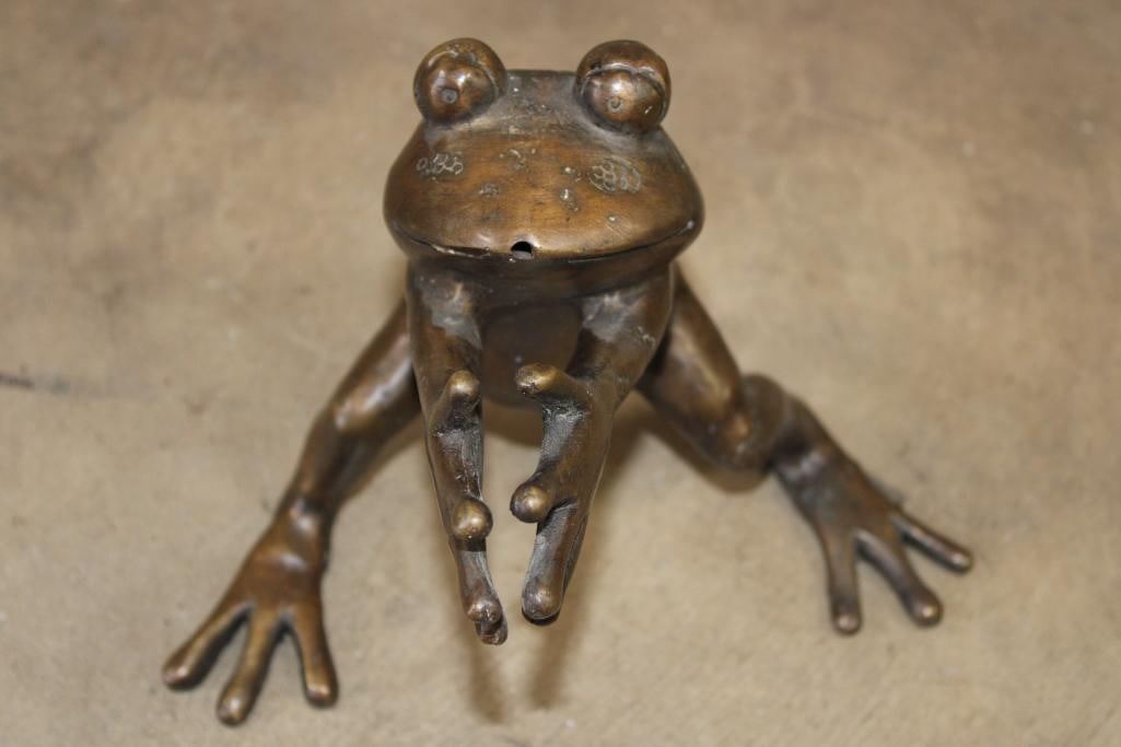Bronze FROG Fountain. It measures 9.5" Long x 8" Wide x 7.25" Tall. The Total Weight is 5 lbs 2 oz. COLLECTIBLE BRONZE GARDEN FOUNTAINS