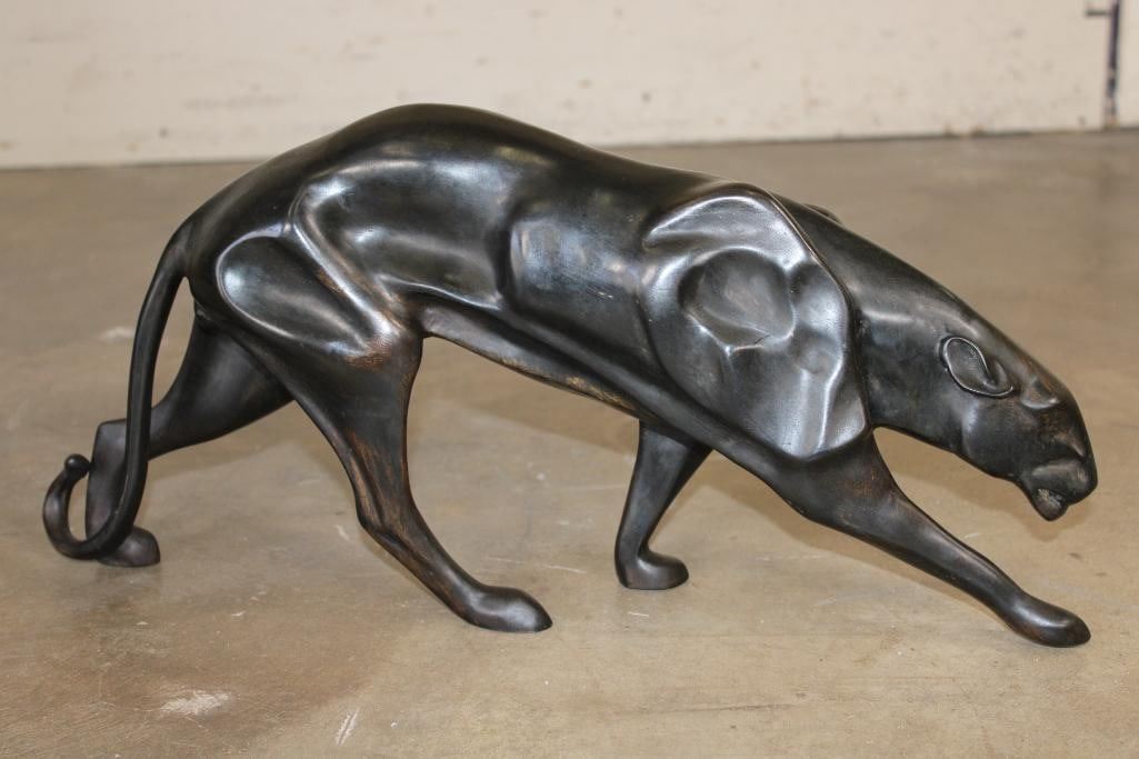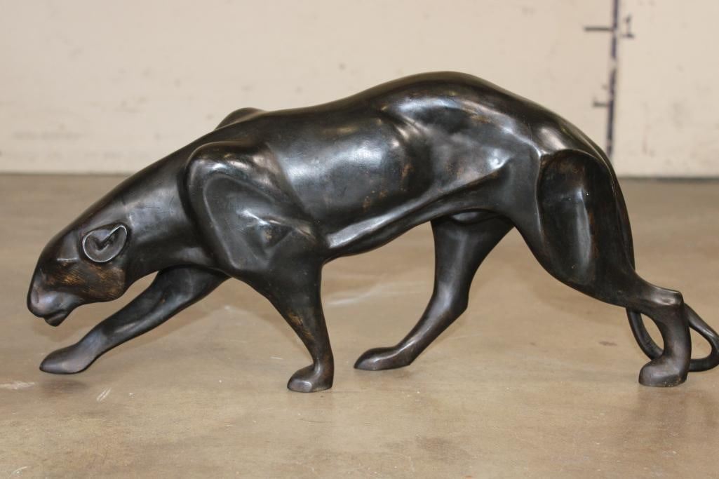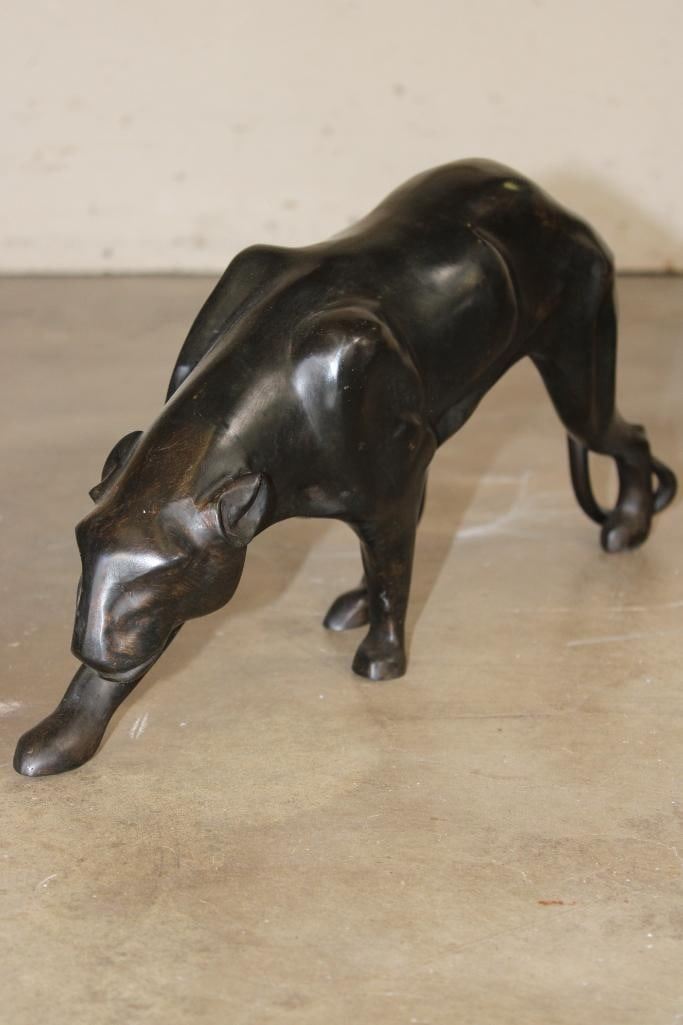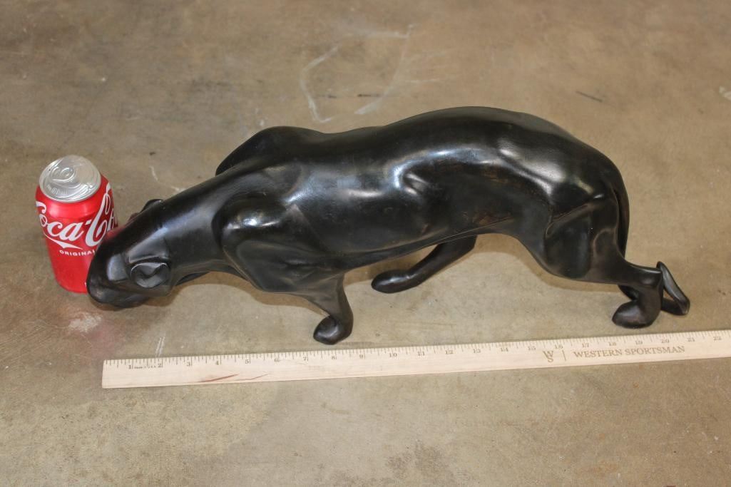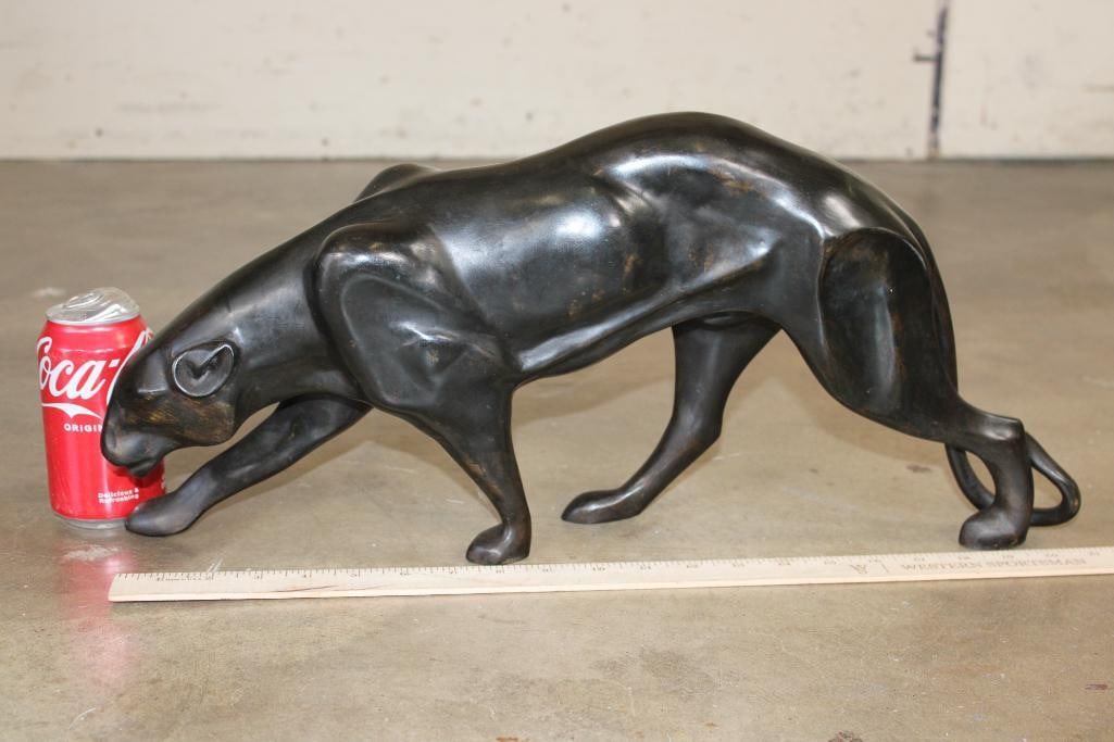 Bronze PANTHER Sculpture. It measures 21.5" Long x 4.5" Wide x 9.75" Tall. The Total Weight is 10 lbs 11 oz. COLLECTIBLE BRONZE ART SCULPTURES AND STATUES
