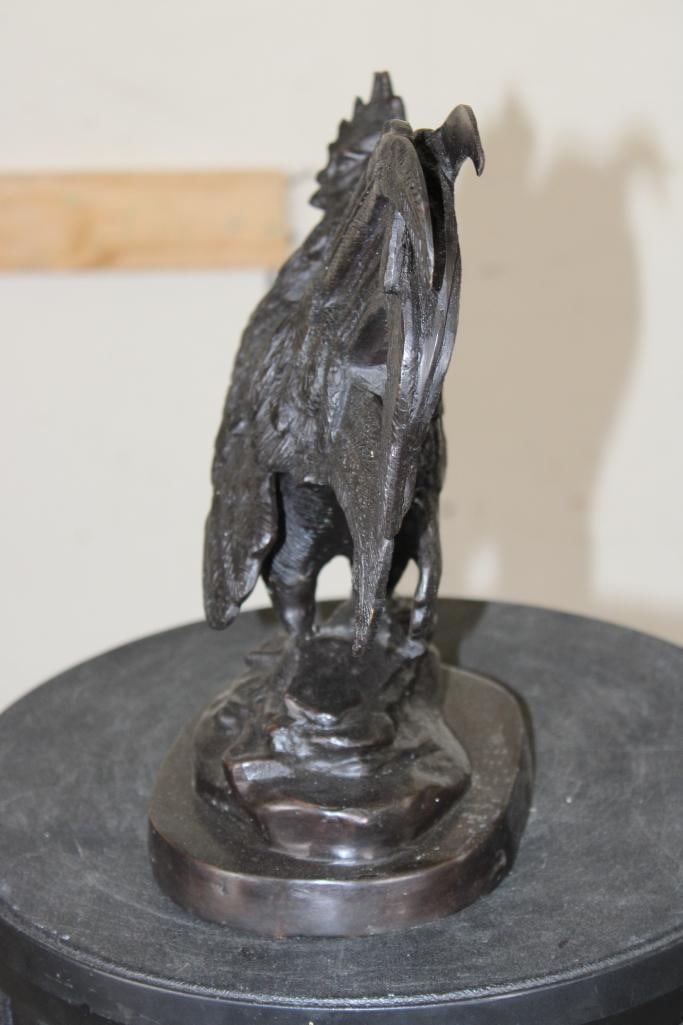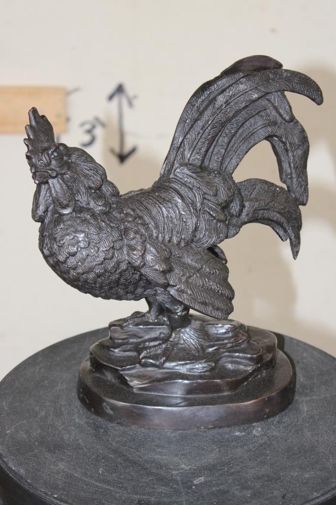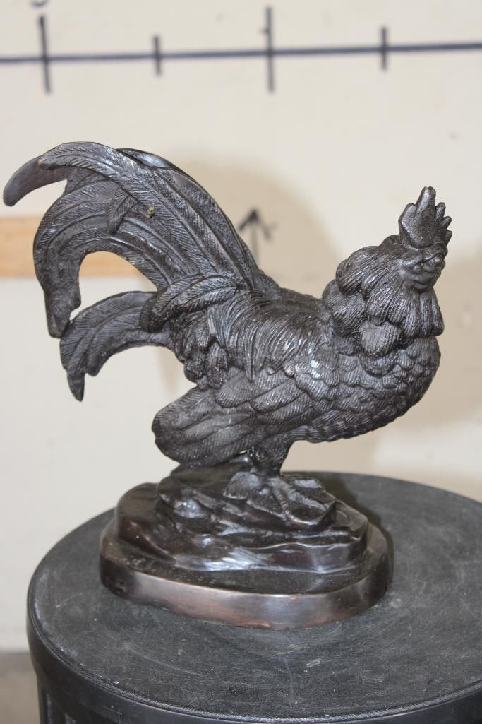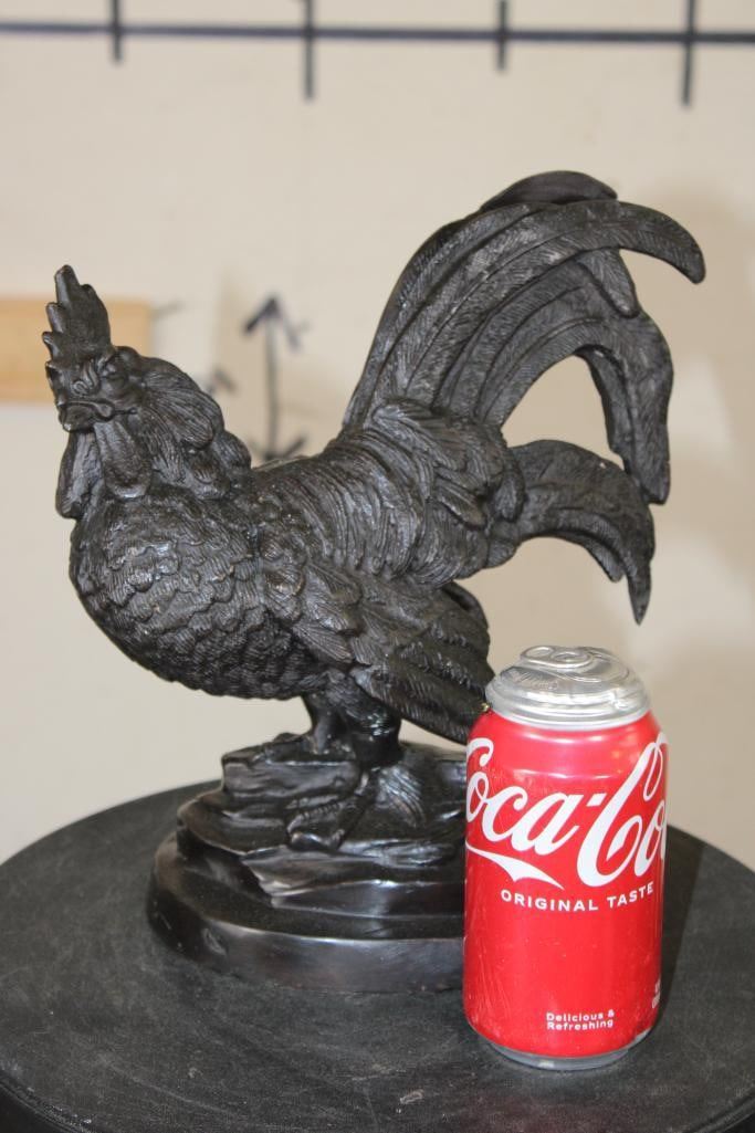 Bronze ROOSTER Sculpture on a Bronze Base. It measures 10.5" Tall x 9.5" Long x 5" Wide. The Total Weight is 8 lbs 9 oz. COLLECTIBLE BRONZE SCULPTURES AND STATUES