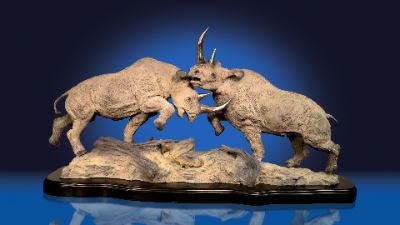 Bronze Sculpture 'Stand Your Ground' by master Sculptor, Lorenzo Ghiglieri is a powerful bronze sculpture that captures the intensity of two rhinos in combat!'