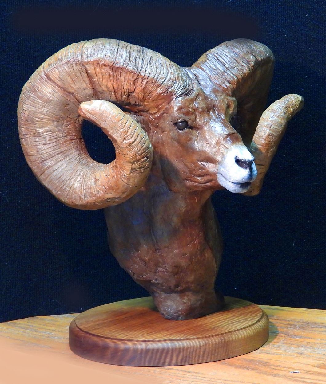 This bronze sculpture is titled “Mountain Monarch” and depicts a classic desert bighorn ram in all his glory. It is number 2 out of an edition of 15. 18” x 17” x 14”
