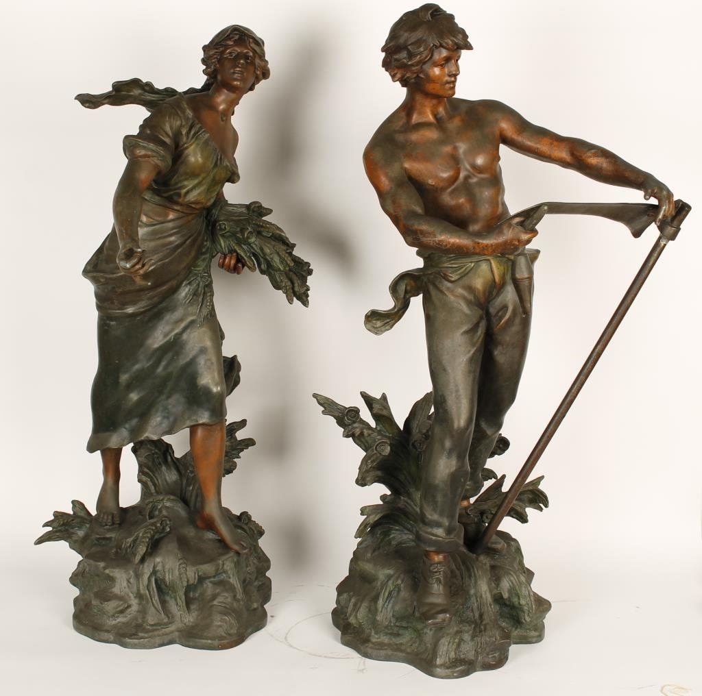 Bronze finished art metal statue of young farmers, probably French and 19th Century; approximately 39” in height and great quality. Est.: $500-$1,000.