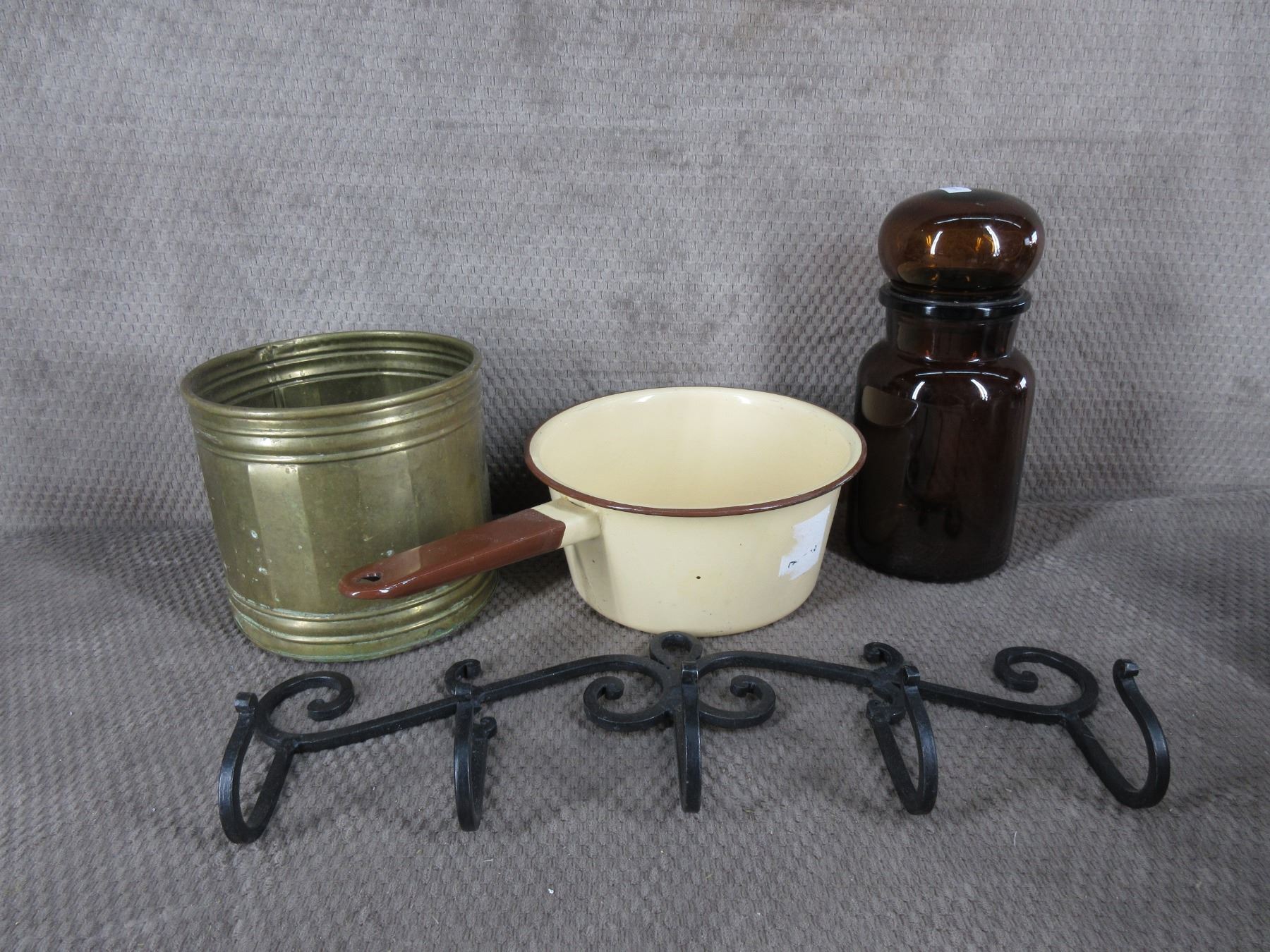 Brown Bottle, Ceramic Pot, Metal Hanger, Brass Pot