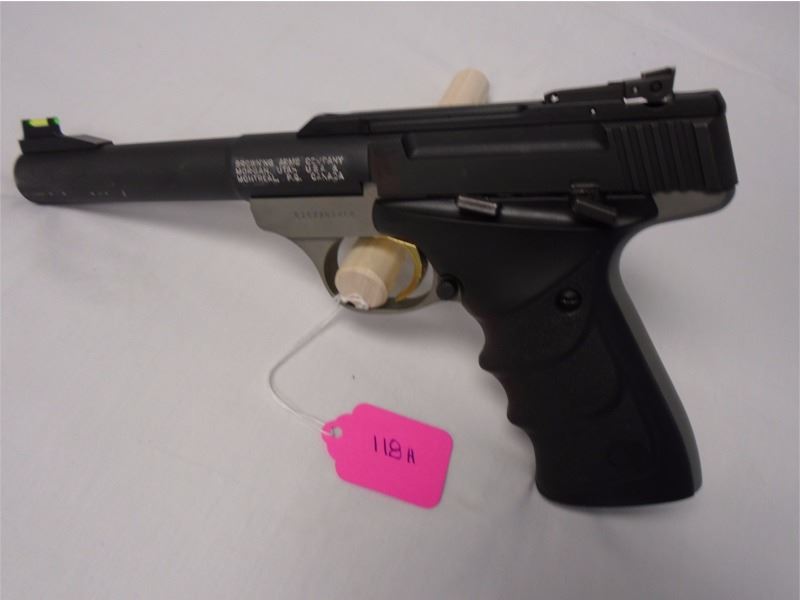 Stock 2118-525 G1, BROWNING, Buck Mark, Lite Gray, 5.5 Semi-automatic pistol, 22 LR, 5 1/2", anodized gray fluted, matte gray aluminum alloy receiver, ultra grip, RX Ambidextrous grips TRUGIO optic front & rear sights. Condition 8.5/10, SN 515ZX01XXX,