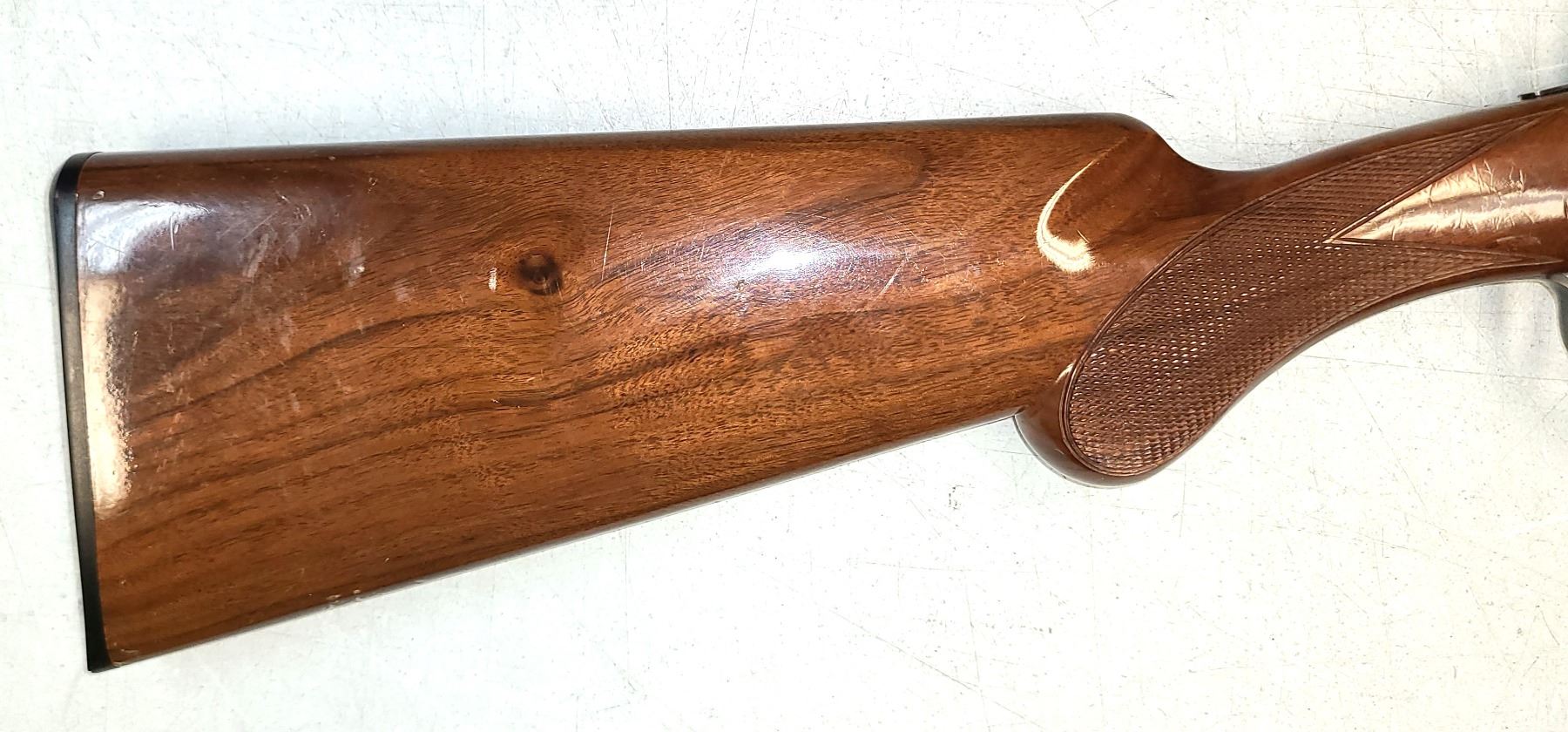 and IMP CYL, blued finish with light scroll engraving on the receiver, gold trigger.