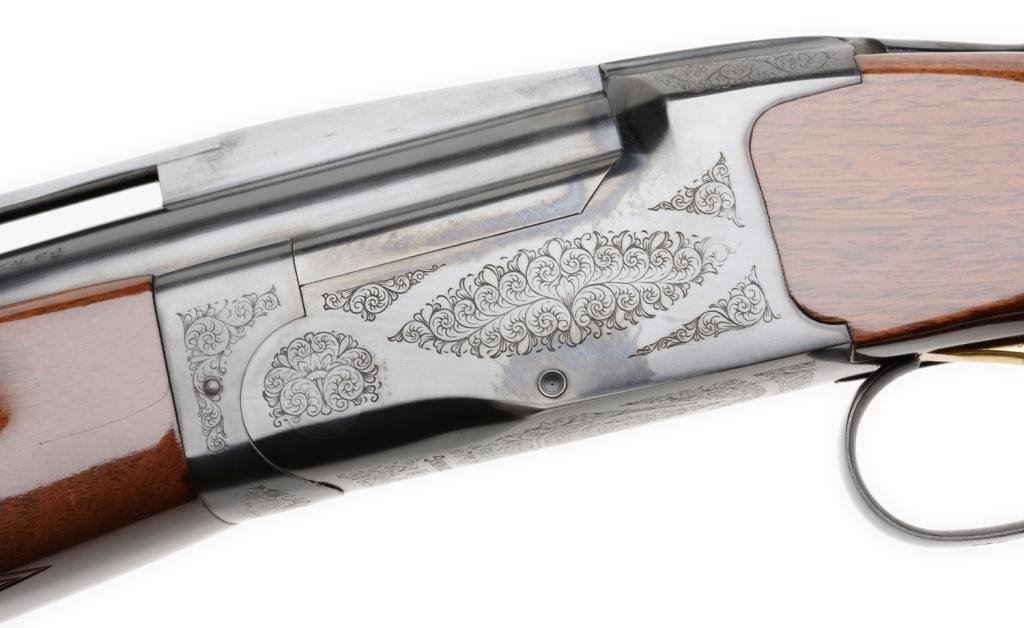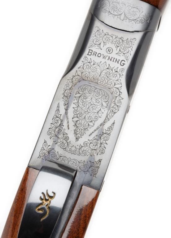 *Browning Model BT-99 shotgun, 12 gauge, 34” ventilated rib barrel, S/N 59595NZ199, blued finish, single gold trigger, checkered wood stocks with Browning hard rubber butt pad; overall fine condition. Est.: $800-$1,400.