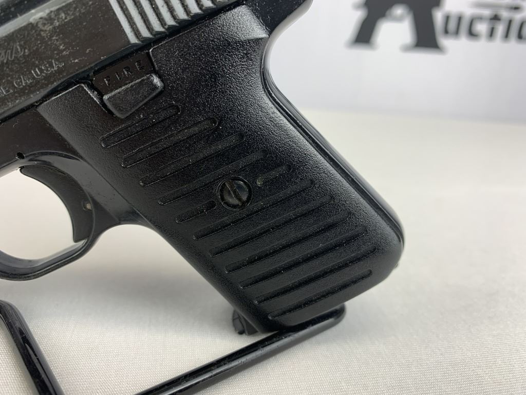 This pistol has grooved plastic grips, fixed front and rear sights. 1 single stack magazine and a lever safety. Comes with the original box and manual. Please see the photos.