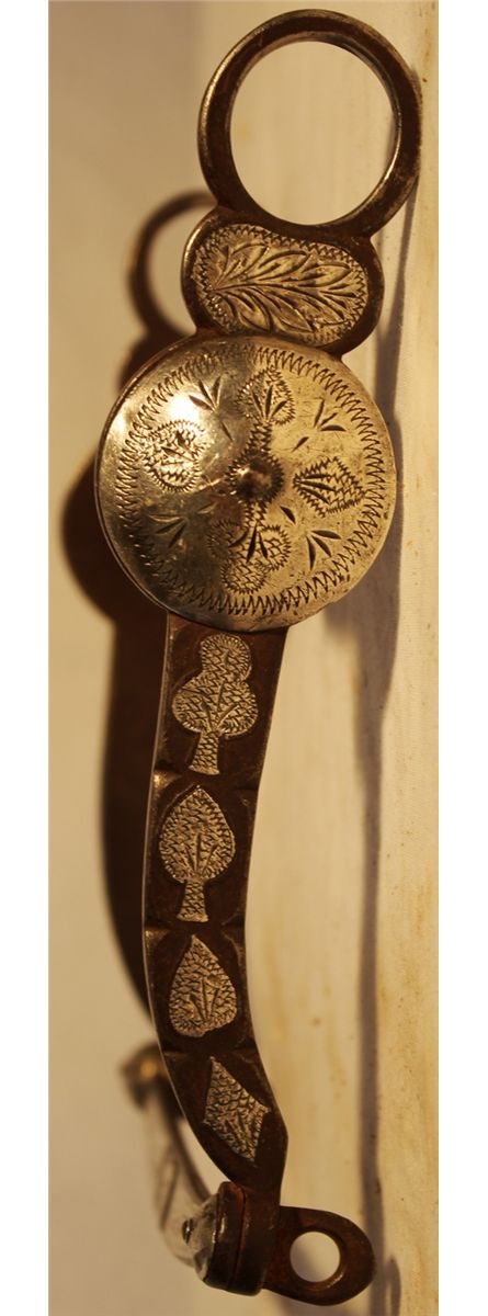 Buerman Card Suite Bit; a beautifully inlaid bit with a port mouthpiece, 1 1/2" conchos, and heart inlaid lipbar. Nice original bit.