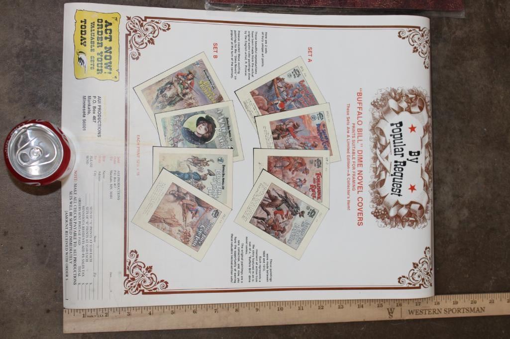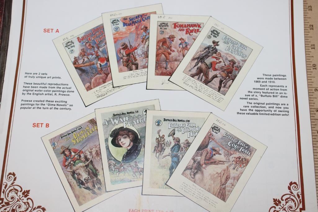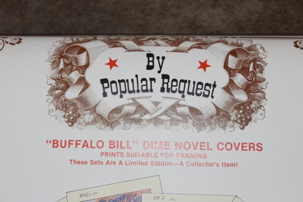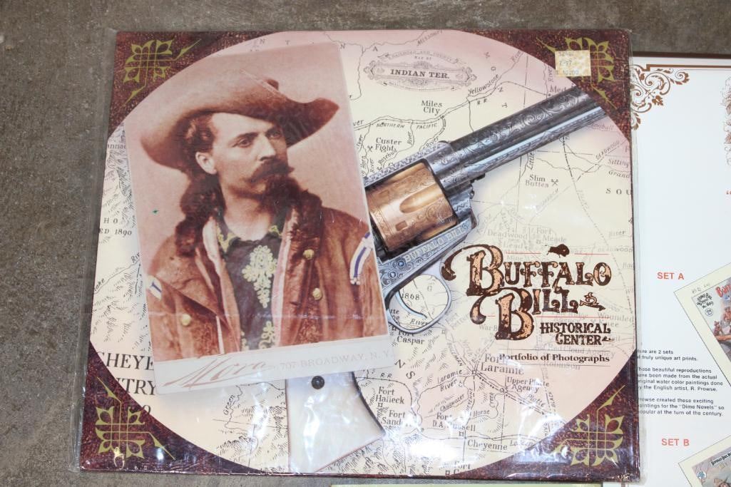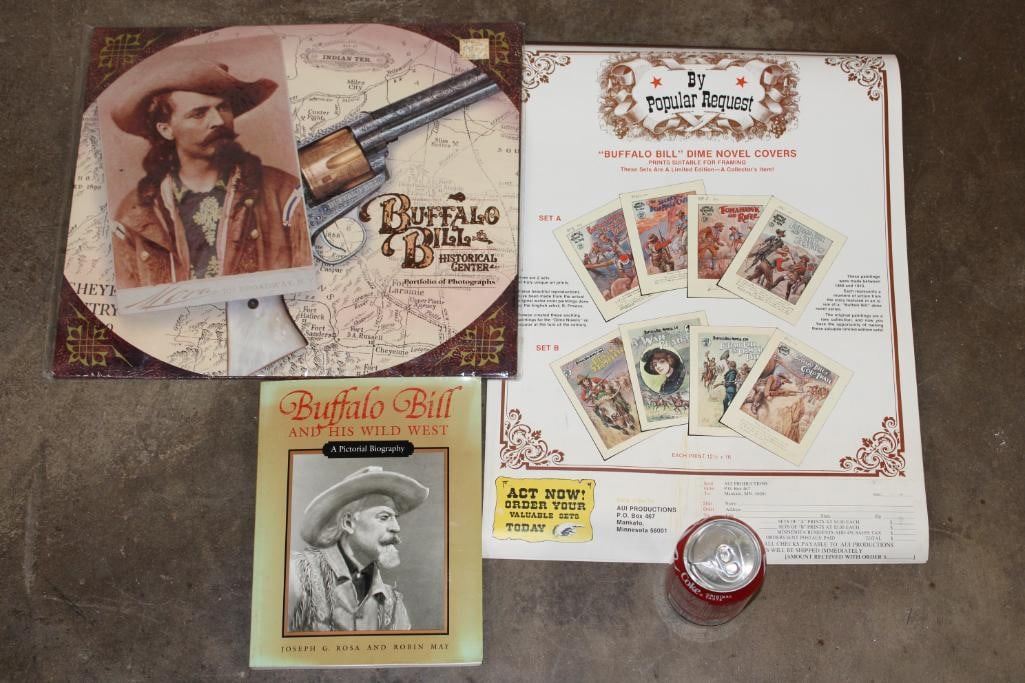 3 Buffalo Bill themed items! "Buffalo Bill and his Wild West: A Pictorial Biography" Book by Joseph G. Rosa and Robin May 1989. Portfolio of 8 Buffalo Bill 13" x 15" Photographs suitable for framing. 8 Limited Edition Buffalo Bill Dime Novel Covers. These all appear to be from the Buffalo Bill Historical Center in Cody, Wyoming. WESTERN COWBOY COLLECTIBLES