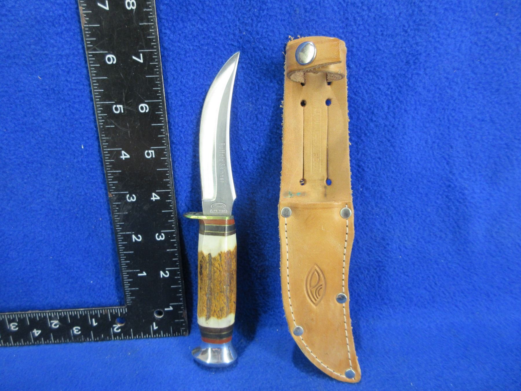 Buffalo Skinner H91 Fixed Blade Knife with Leather Sheath - Solingen Germany - 3 1/2" Blade, Stag Handle