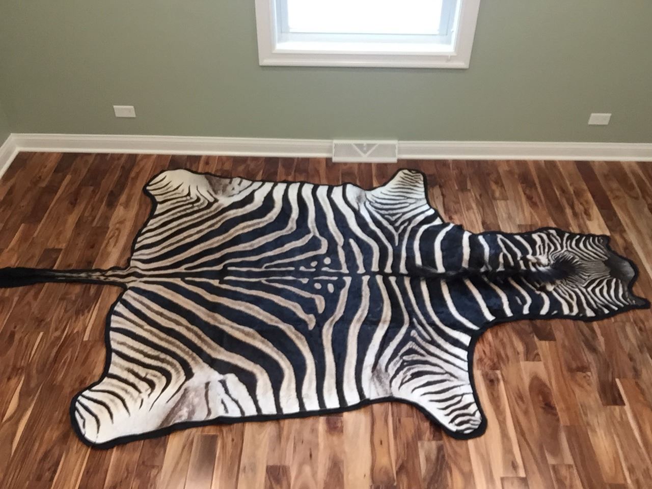 The Burchell’s Zebra with its shadow stripes is considered one of the handsomest species and this fine rug lives up to that expectation. This is an authentic and beautiful Grade A zebra rug from South Africa, complete with felt backing and a thick mane, featuring excellent contrasts in color and extreme durability. It is a larger than average size: 10.5 ft. head to tip of tail, by 5.75 ft. wide. This rug would make a wonderful addition to a game room or as a beautiful accent piece in any home.
