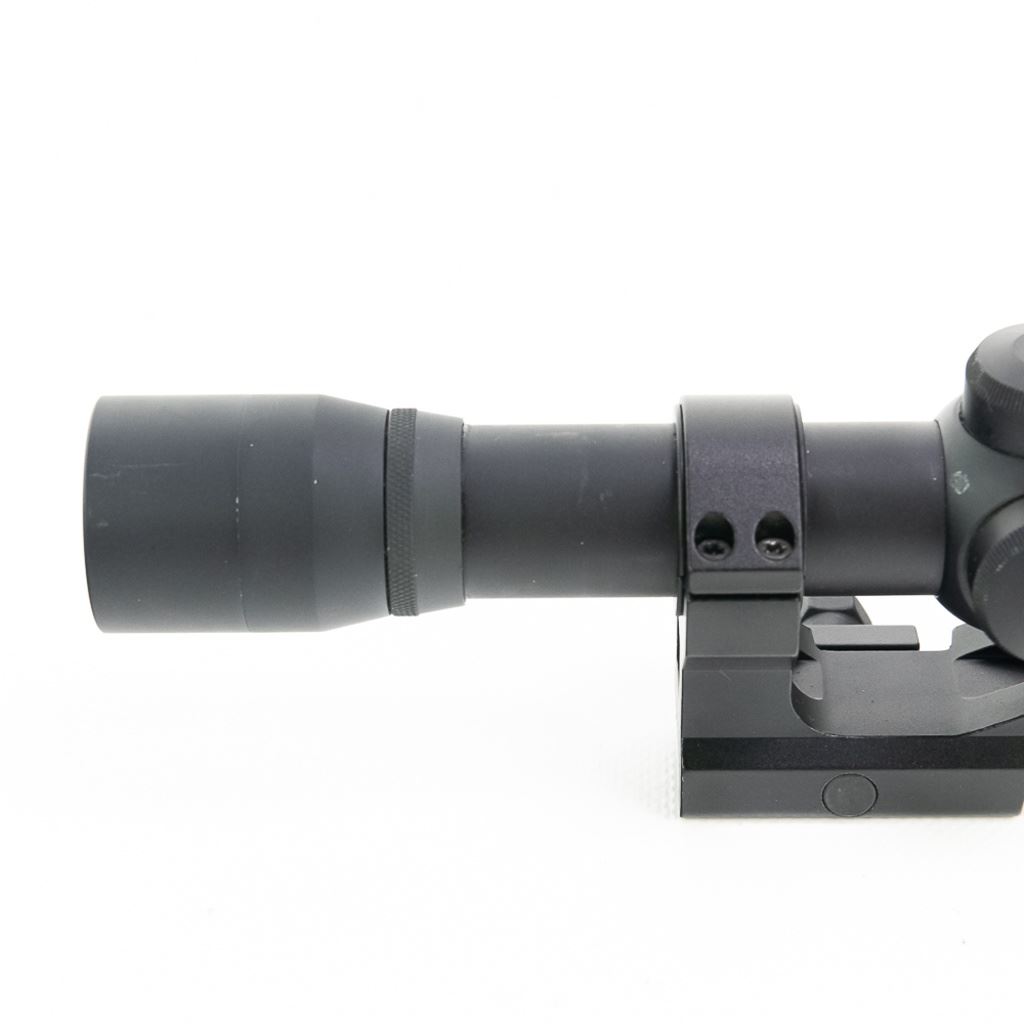 Burris 1.5X Long Eye Relief LER Scout style rifle or handgun scope. Scope is in excellent used condition with minor scratches on tube from use. Scope comes with Burris MTAC style cantilever mount. See Photos.