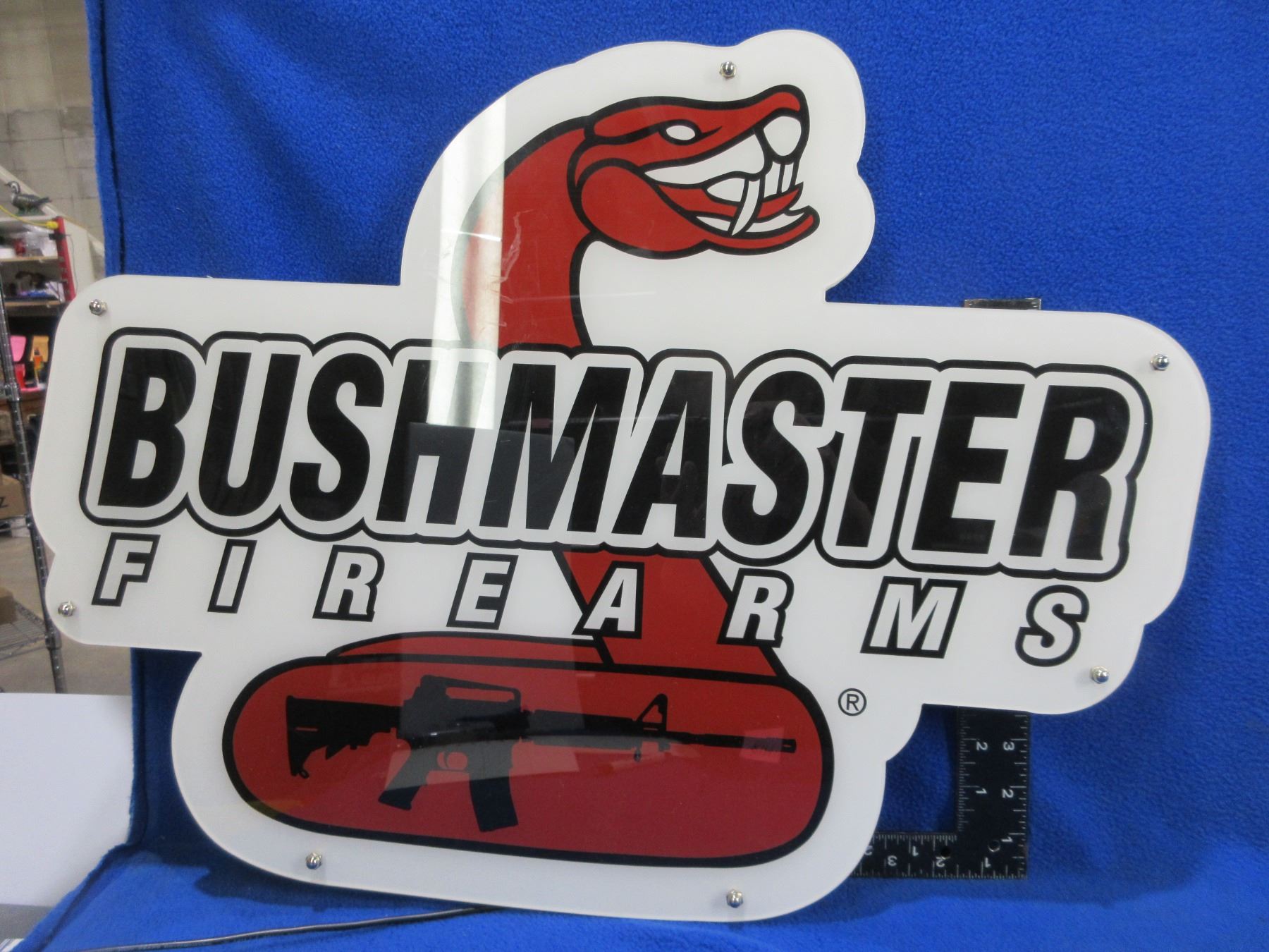 Bushmaster Firearms Logo Dealer Advertising Sign - approx. 23" x 17" x 3/4"