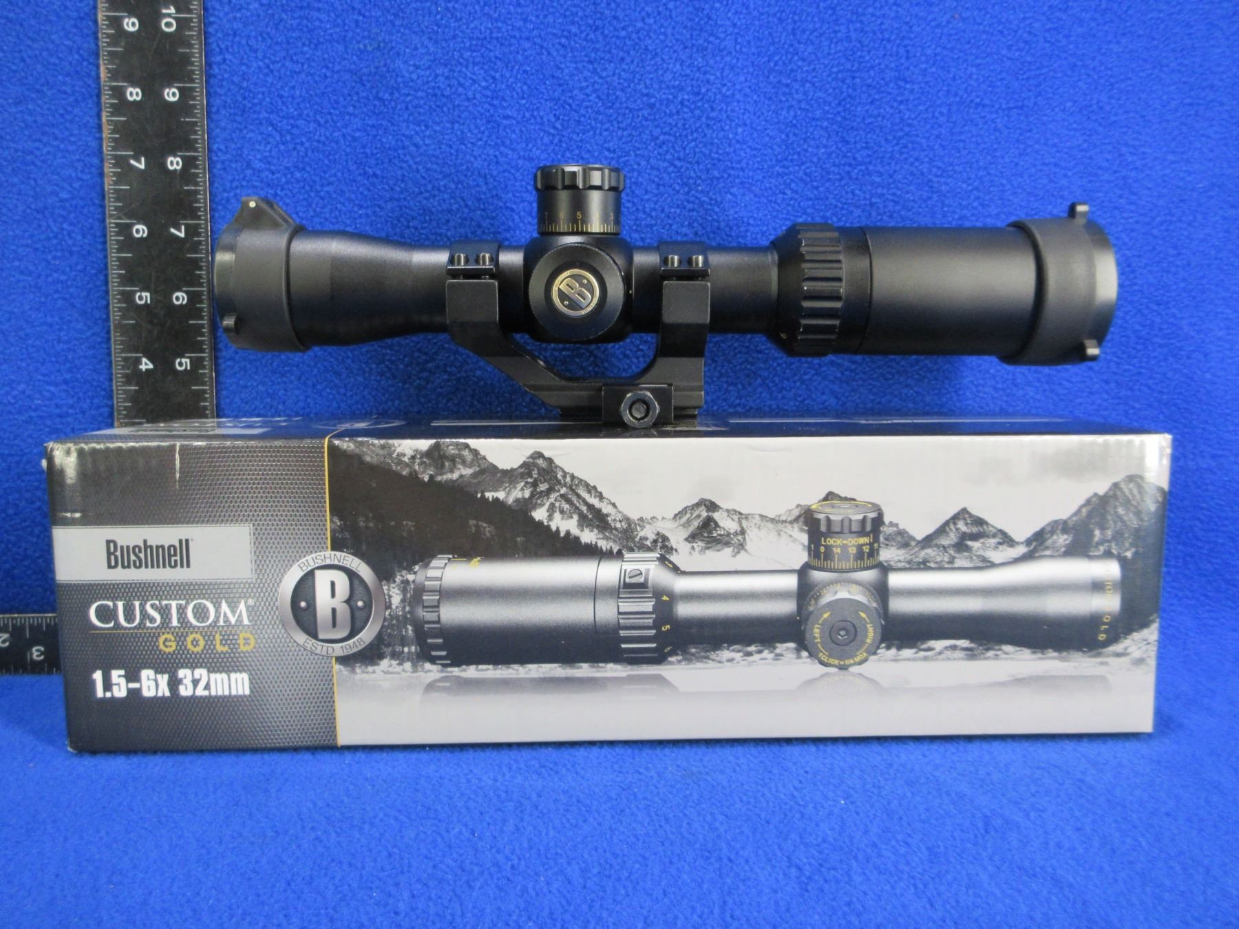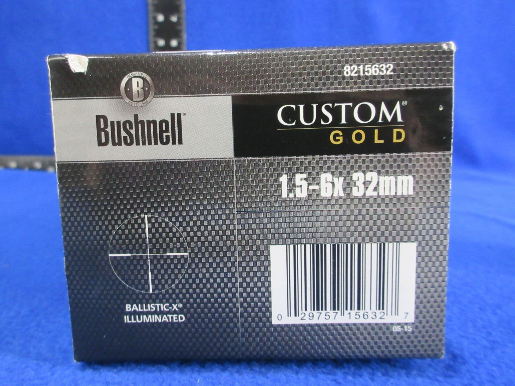 Bushnell Custom Gold 1.5-6x32 Scope - Like New Condition - Appears Clear, Ballistic-X Illuminated Reticle - Comes with flip-up lens covers, rings with mount, manual and original box