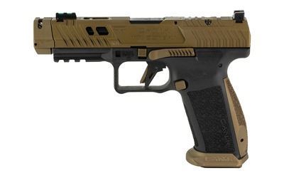 CANIK, TTI Combat, Striker Fired, Semi-automatic, Polymer Framed Pistol, Full Size, 9MM, 4.6" Ported and Fluted Barrel, Canik Compensator, Matte Finish, TTI Bronze, Adjustable Rear Sight, Fiber Optic Front Sight, 18 Rounds, 2 Magazines, MeCanik MO3 Optic