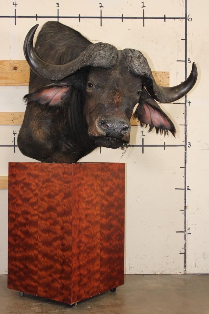 Nice CAPE BUFFALO Pedestal Mount. It has a 38" Horn Spread. The Cape Buffalo is removable and the Pedestal has Wheels. TAXIDERMY