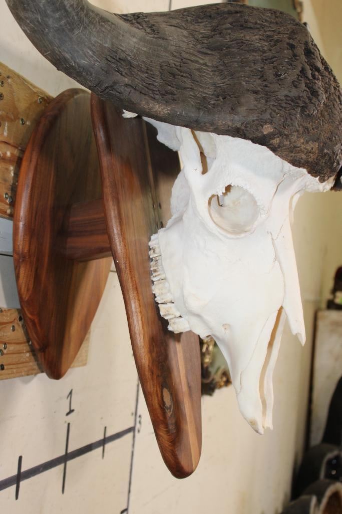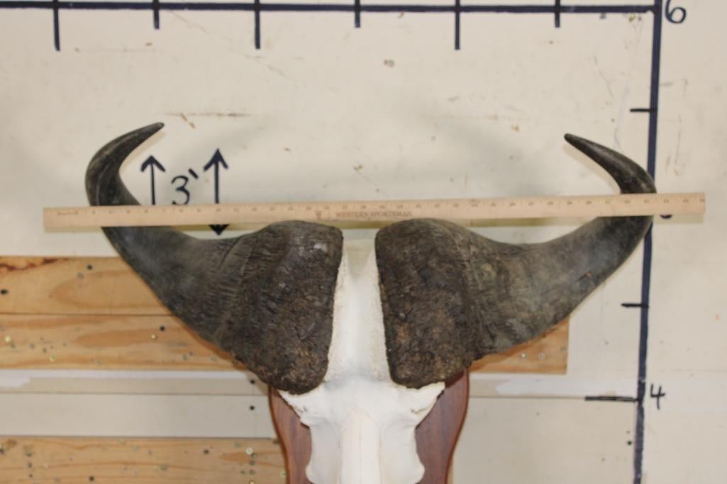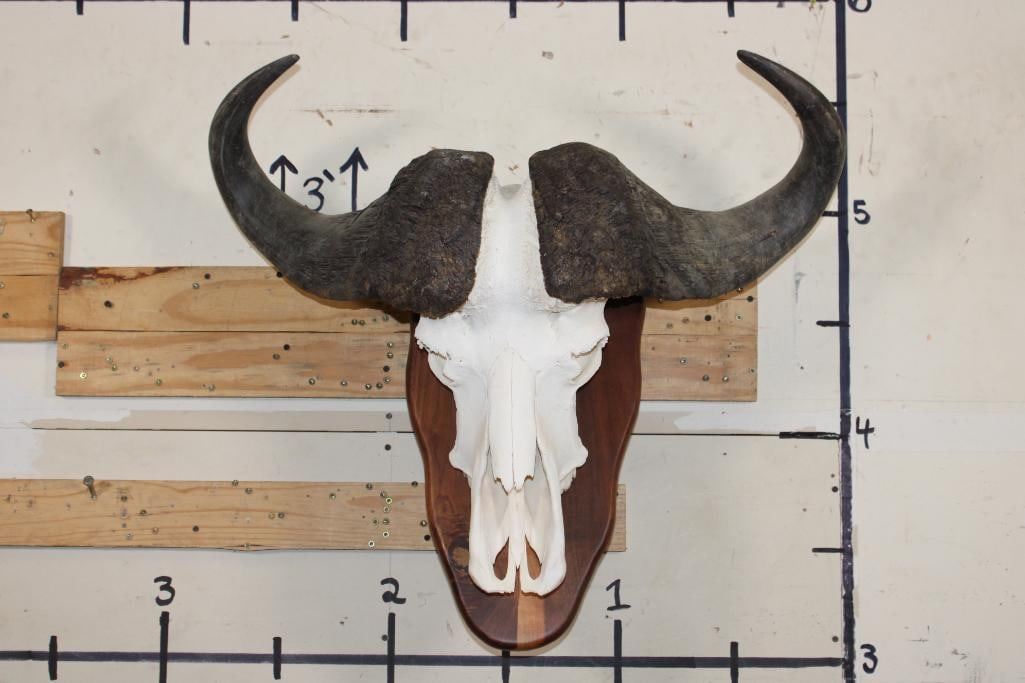 Nice CAPE BUFFALO Skull on a Wood Wall Pedestal. It has All but one Tooth and a 31.75" Spread. TAXIDERMY