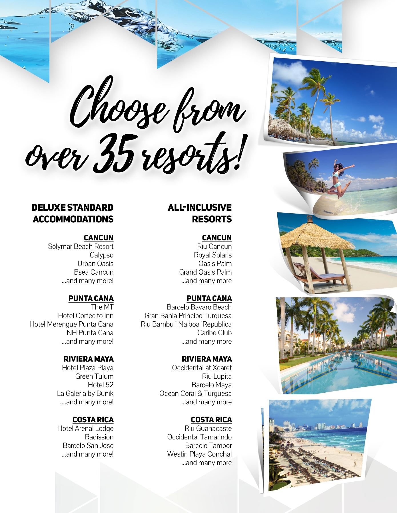 Seven day/six night deluxe accommodations for 2 adults. Choose from four exciting destinations:Cancun, Punta Cana, Costa Rica, Riviera Maya.