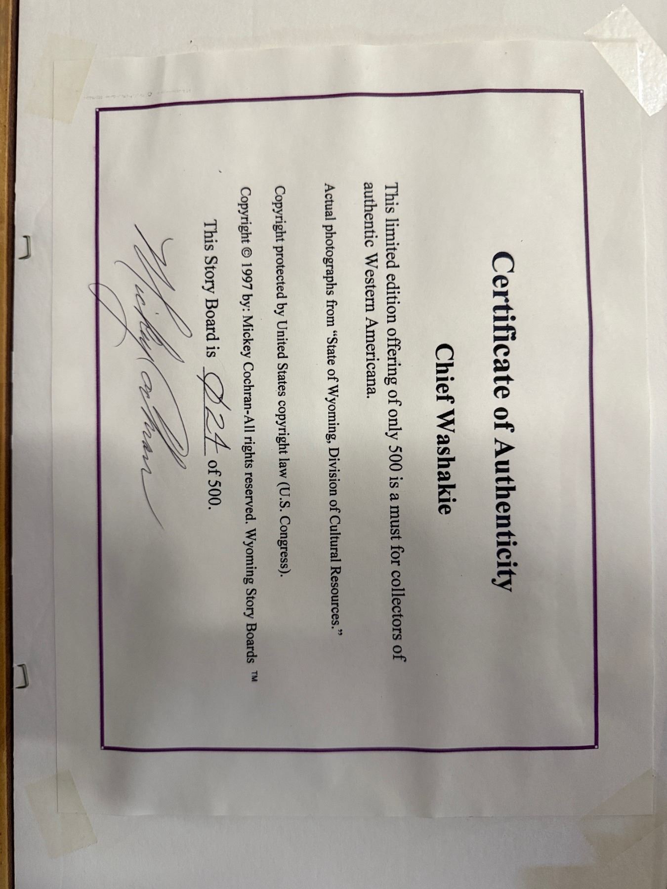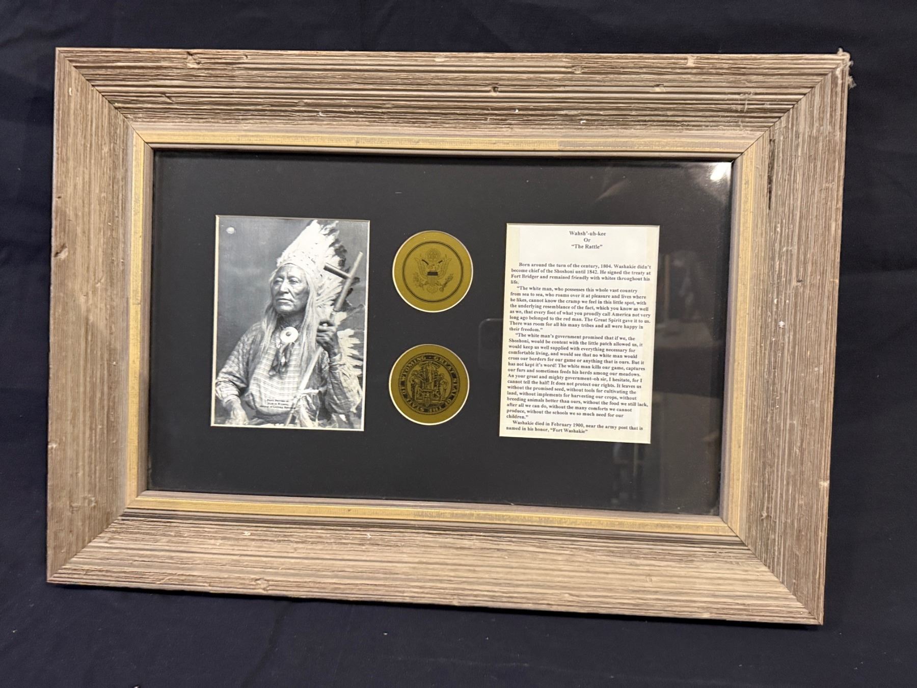 LIMITED EDITION 24/500 FRAMED COLLECTORS OF AUTHENTIC WESTERN AMERICANA. CHIEF WASHAKIE