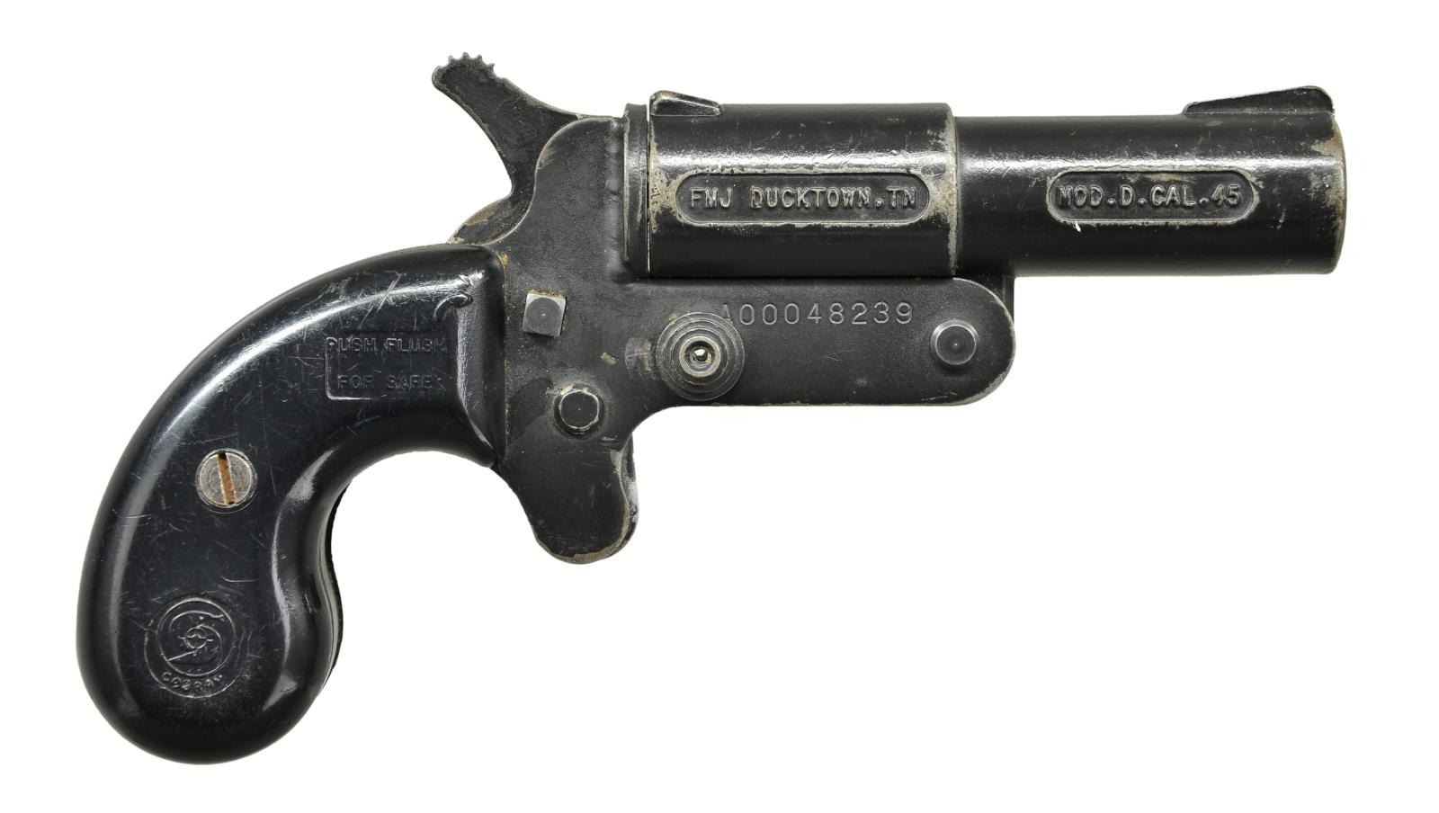 Cal. 45 (45 LC & 410, 2 1/2"). S# A00048239. Bbl. 3 1/2". Open sights. Black finish. 2 Piece black plastic grips. CONDITION: good overall metal & grips w/ handling marks & peeling finish. Good bore w/ light pitting. (23-982/MD). MODERN. $75-125.