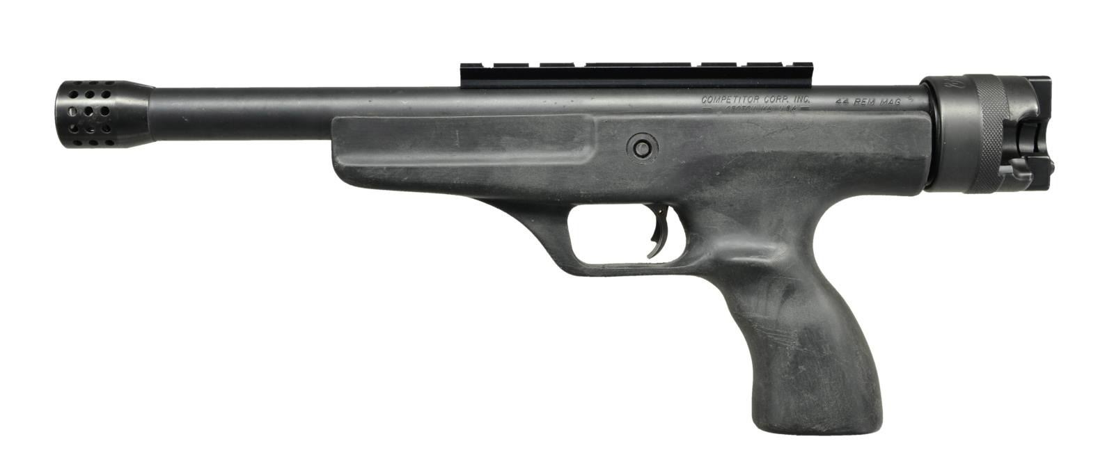 Cal. 44 Rem. Mag. S# NC150139. Bbl. 14" w/ 3/4" ported muzzle. Matte blue finish. Competitor Corp Weaver style rail. Black synthetic stock. CONDITION: very good blue w/ scattered peppery oxidation. Very good stock. Near excellent bore. (23-743/MD). MODERN. $250-400.