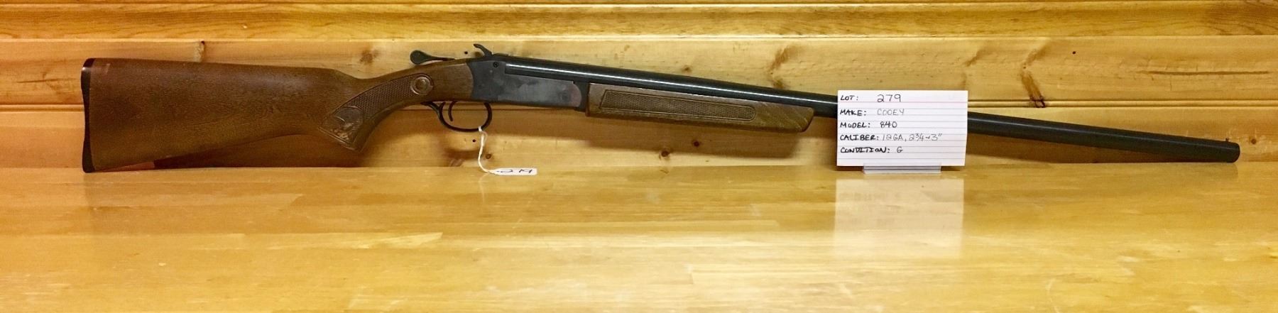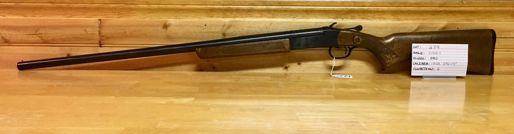 LOT: 279 MAKE: COOEY MODEL: 840 CALIBER: 12 GA, 2 3/4 & 3" CONDITION: G S/N: 73598