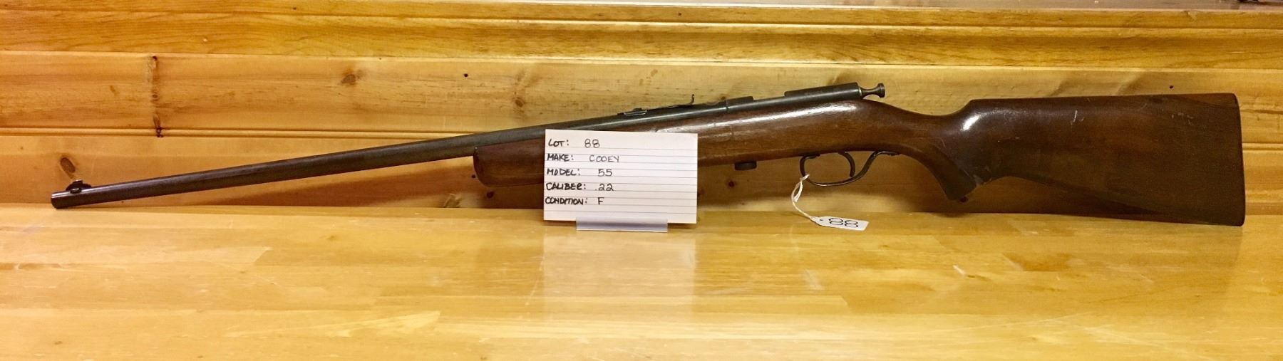 LOT: 88 MAKE: COOEY MODEL: 55 CALIBER: .22 CONDITION: F S/N: NONE