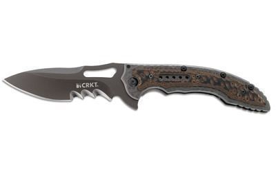 Columbia River Knife & Tool, Fossil Folding Knife 3.96" Blade, Veff SerrationsEdge, Drop Point, 2Cr13 Stainless with G10 Overlay Frame, 8Cr12MoV/Black EDP Finish
