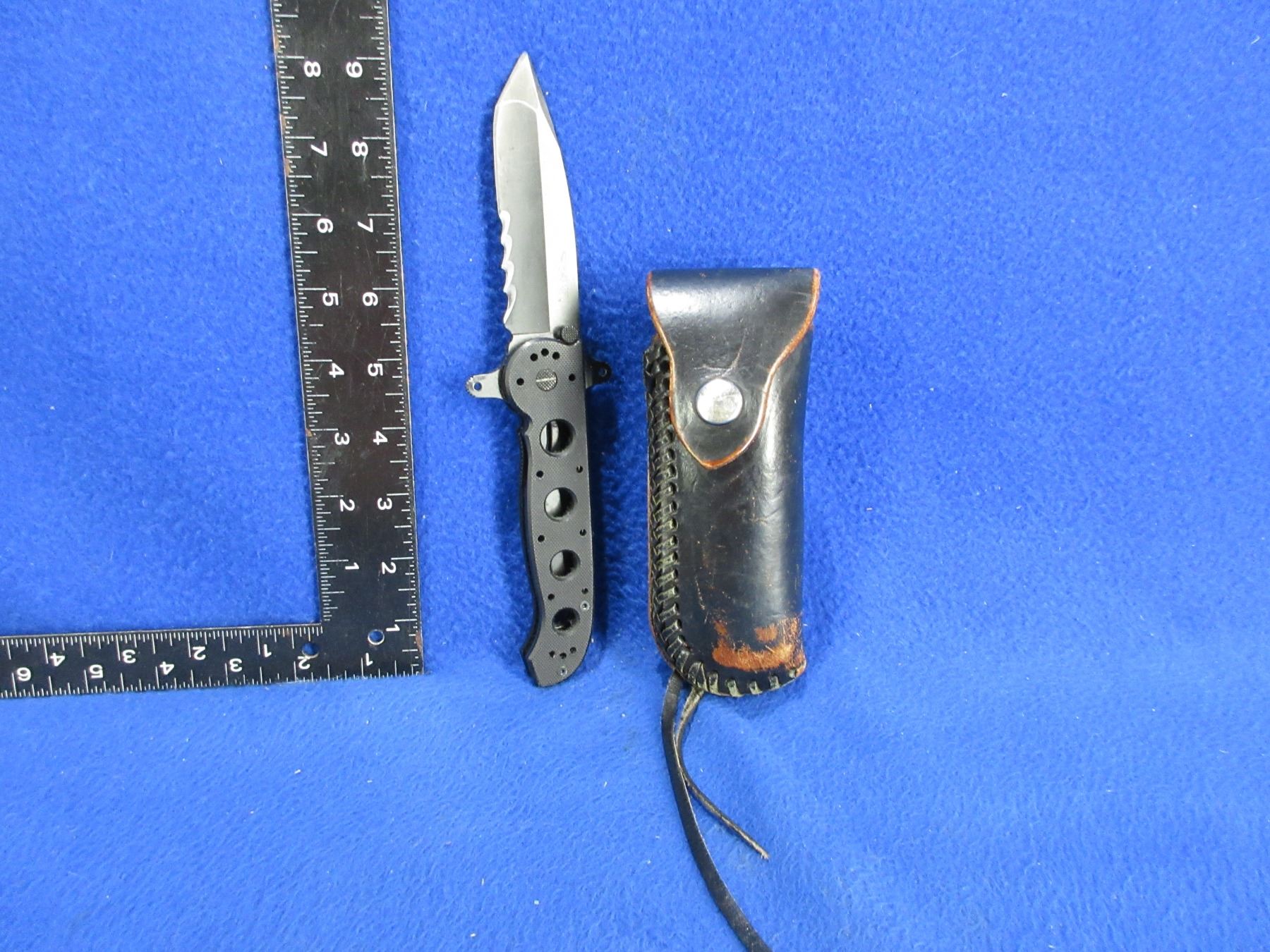 CRKT M16-14SFG Folding Locking Tanto Blade Knife with Leather Sheath - 3 3/4" Blade