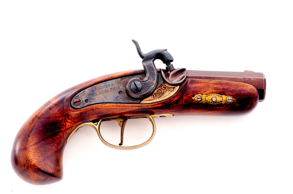 CVA Philadelphia Derringer Kit Pistol, .45 cal., 8'' overall length, barrel with a brown patina, color case hardened lock, brass hardware, with walnut handle. Includes the original owner's manual. In good condition as hobbyist assembled. Hammer and trigger function smoothly. Bore is good. Est.: $50-$100. (No FFL Required)