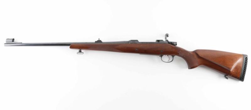 Czech bolt action rifle imported by CZ USA, Kansas City KS. Features blued finish, walnut stock with right handed cheekpiece & curved European style comb, checkering at wrist & forend, ventilated rubber recoil pad, 24" barrel, hooded blade front sight, adjustable rear sight, receiver dovetails for scope mounts (no mounts included), hinged floorplate, sling swivels, manual safety. Bore is very good condition. Retains 90% finish with scuffing on triggerguard bow, minor blemishes throughout. Stock is very good condition with dents to butt, scuffing on forend. Condition is NRA Very Good+ *** Modern Firearm ***