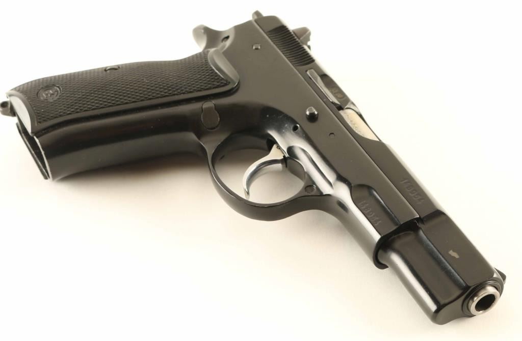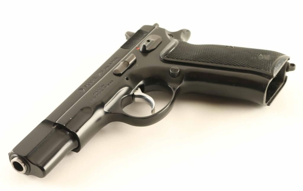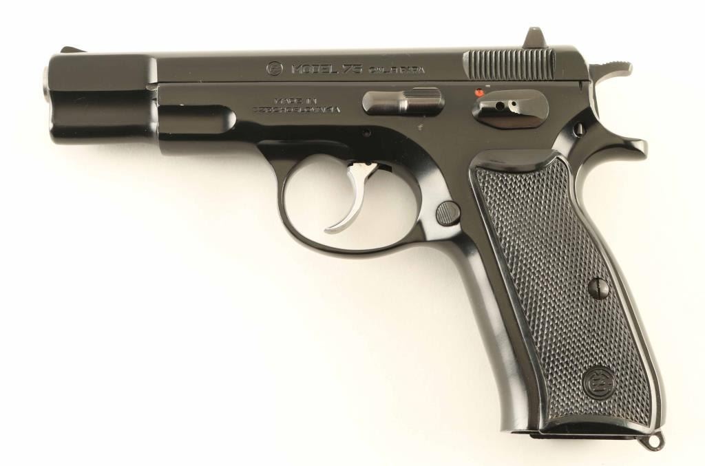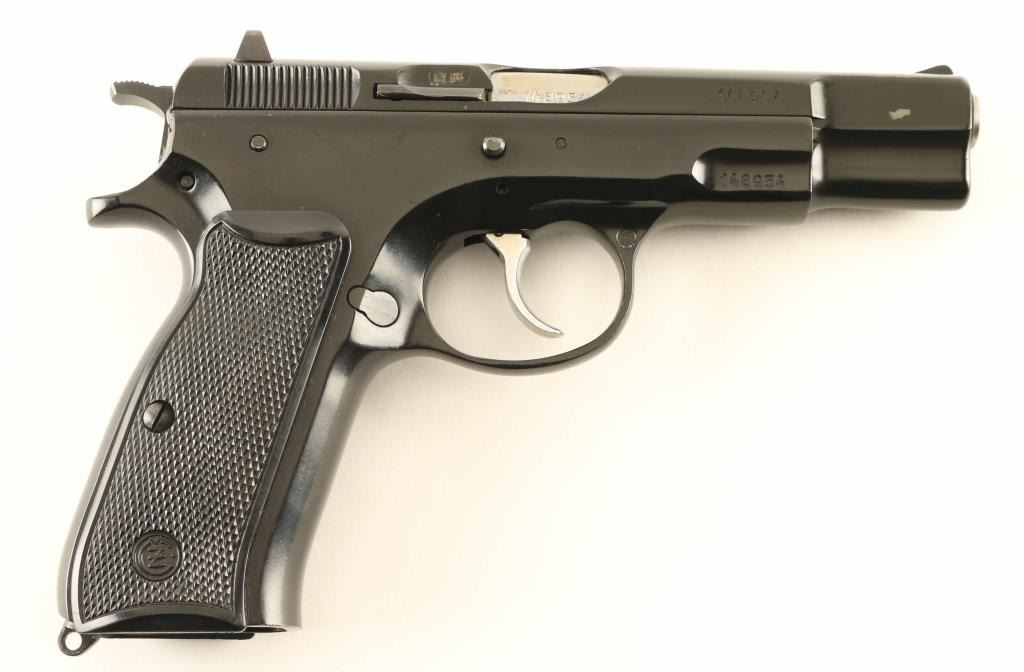 Semiautomatic pistol made in Czechoslovakia by CZ circa 1986, no importer information observed. Features black paint finish, checkered black plastic grips, 4.5" barrel, fixed sights, double/single action trigger, frame mounted manual safety, lanyard stud. Bore is excellent. Retains 90% finish with several small areas of bare metal where paint has chipped off, scratches to finish on sides of frame. Left grip panel is a bit loose. Serial number repeated on slide & barrel. No magazine included. Condition is NRA Very Good (missing magazine) *** Modern Firearm ***