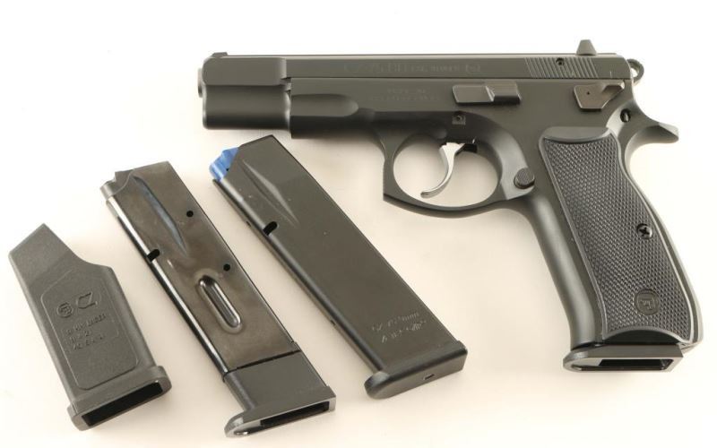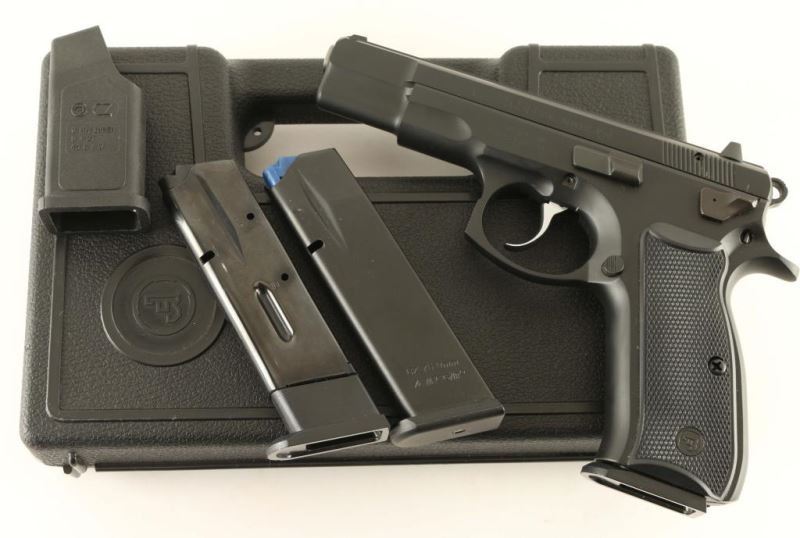 Czech made double action semi-automatic pistol chambered in 9x19mm, circa 2011. Imported by CZ-USA of Kansas City, K.S. with import marks on the right side of the frame. Features all steel construction, matte black finish, 4.7" barrel, high contrast three-dot sights, smooth trigger, serrated round hammer spur, firing pin block safety, thumb decocking lever, push button magazine release, 10 round magazine, and two-piece checkered black plastic grips with CZ insignias. Includes a factory hard case with documents, speed loader and two spare magazines. Pistol exhibits little to no visible wear. Action is smooth, bore is pristine and plastic grips are fine. Likely unfired. Condition is like NRA new in box. ***Modern Firearm***