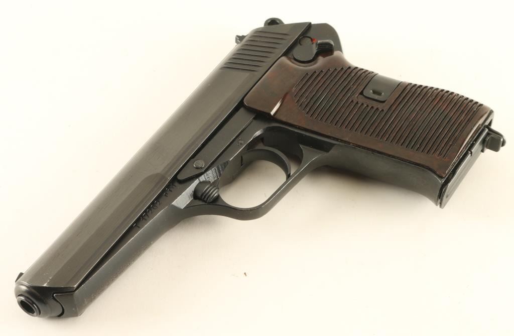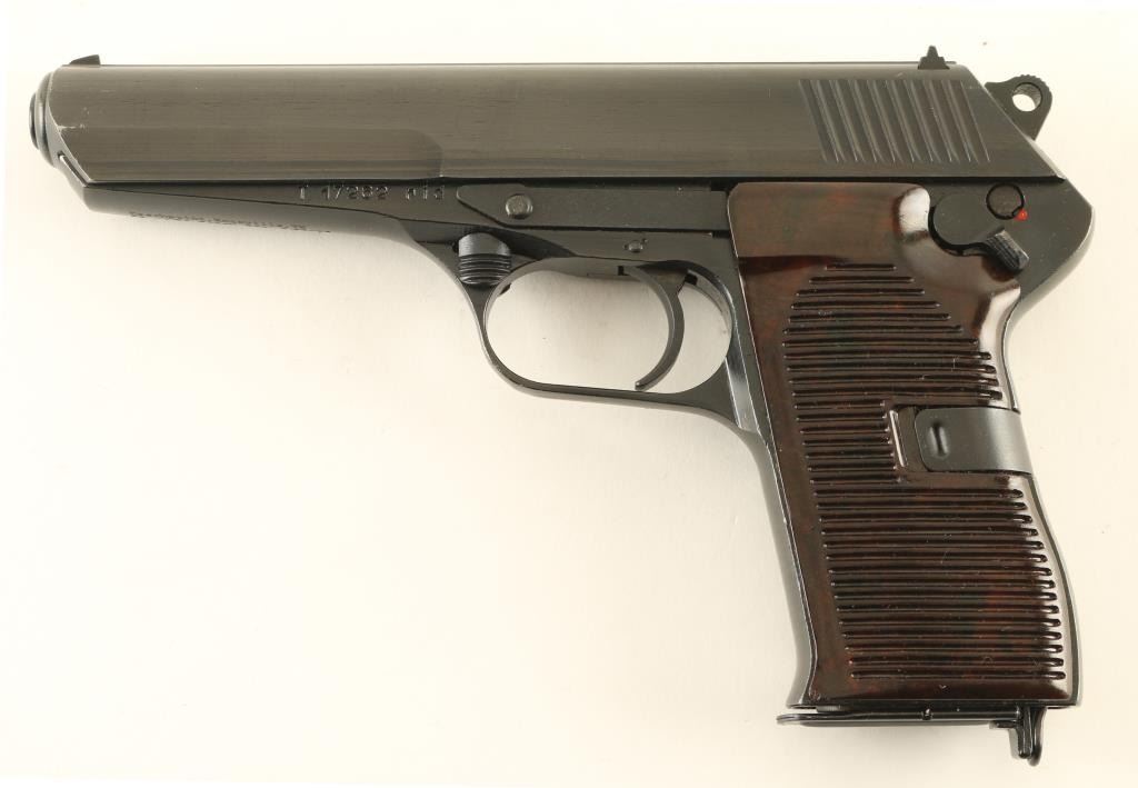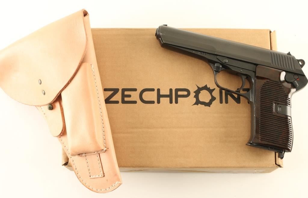 Czech military pistol imported by Czechpoint, Knoxville TN. Arsenal refinished. Features matte black finish, grooved brown plastic grips, 4.8" barrel, fixed sights, decocking safety, single action trigger, heel magazine release, lanyard ring at butt. Bore is very good condition. Overall condition is like new. Marked on slide "VOZ 75". Numbers match on frame, barrel, slide. Includes manual, holster, lanyard, cleaning rod, extra firing pin & hammer, cardboard Czechpoint box. Condition is NRA Excellent - as reworked *** C&R Firearm ***