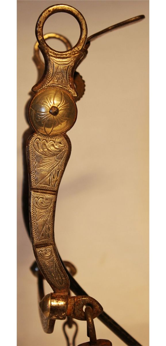 California Silver Spade Bit; an early unmarked extra tall spade bit, in wonderful condition with nicely engraved silver inlays.