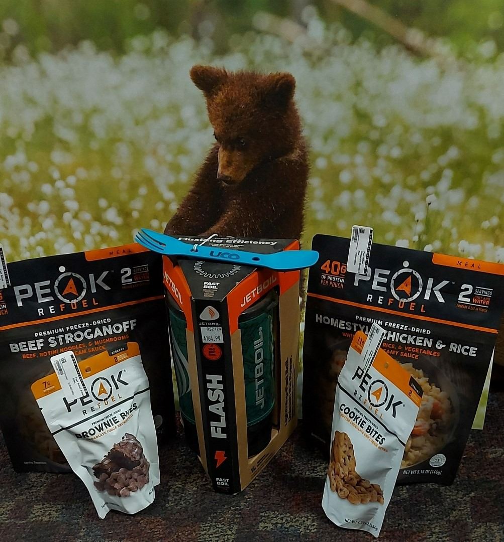 Camp Cook Package: includes the Jetboil 1L Wild camping stove, meals and desserts by Peak Refuel and the UCO Utility Spork.