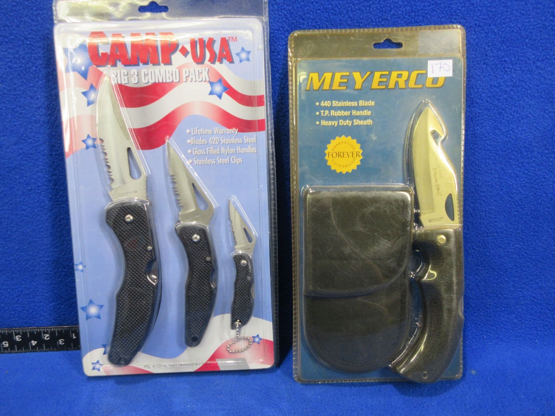 Camp USA Big 3 Combo Pack & Meyerco Blackie Collins Folding Lock Knives - New Old Stock