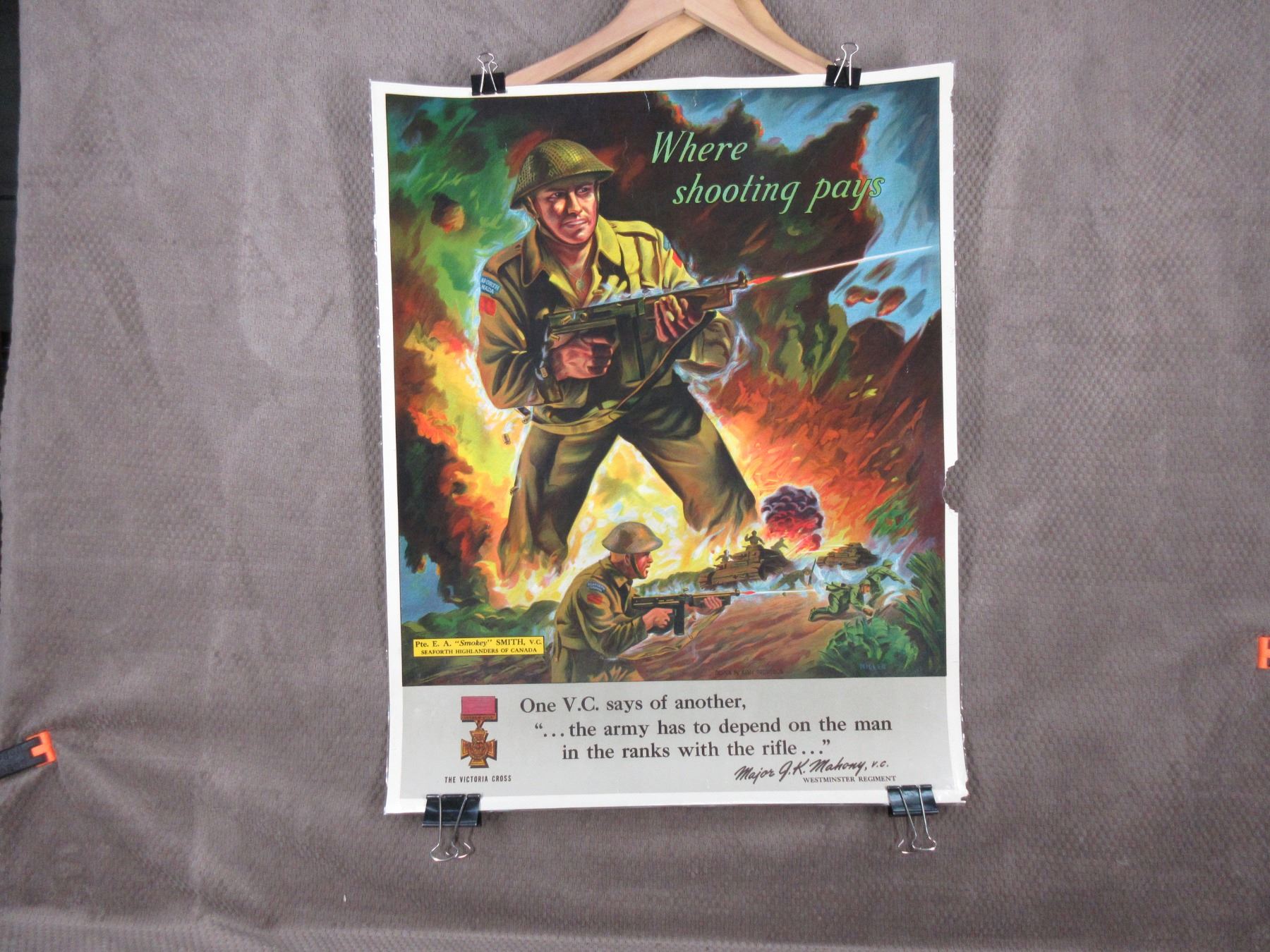 Canada WWII Propaganda Poster - Pte. E. A. "Smokey " Smith V.C. Seaforth Highlanders of Canada - Laminated and has some damage, 21 1/2" X 27"