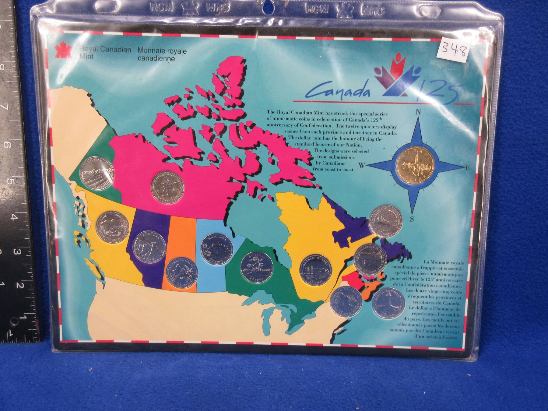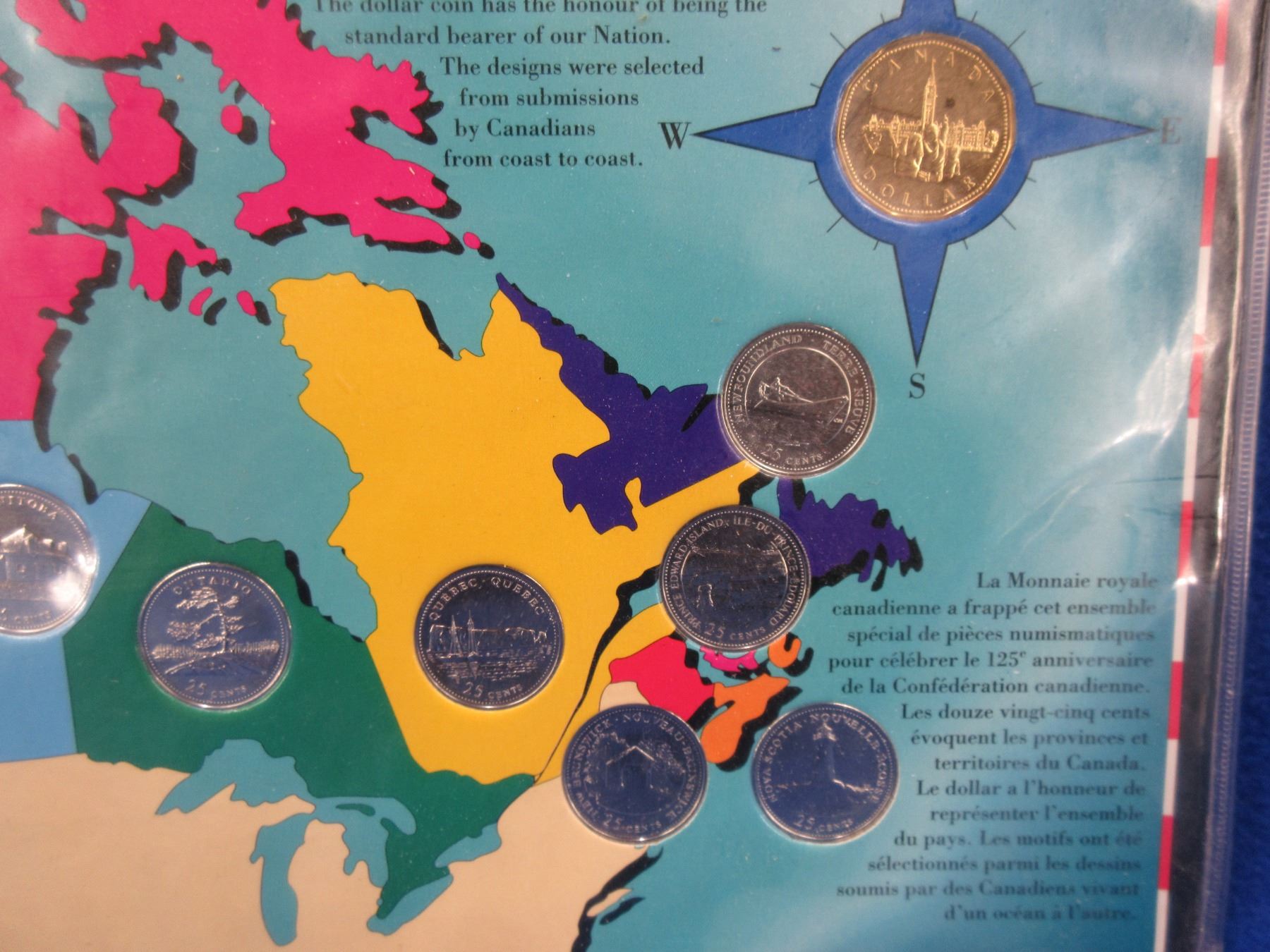 Canadian 25 Cent Piece - 12 Coin Set + Loonie - Canada's 125th Anniversary of Confederation