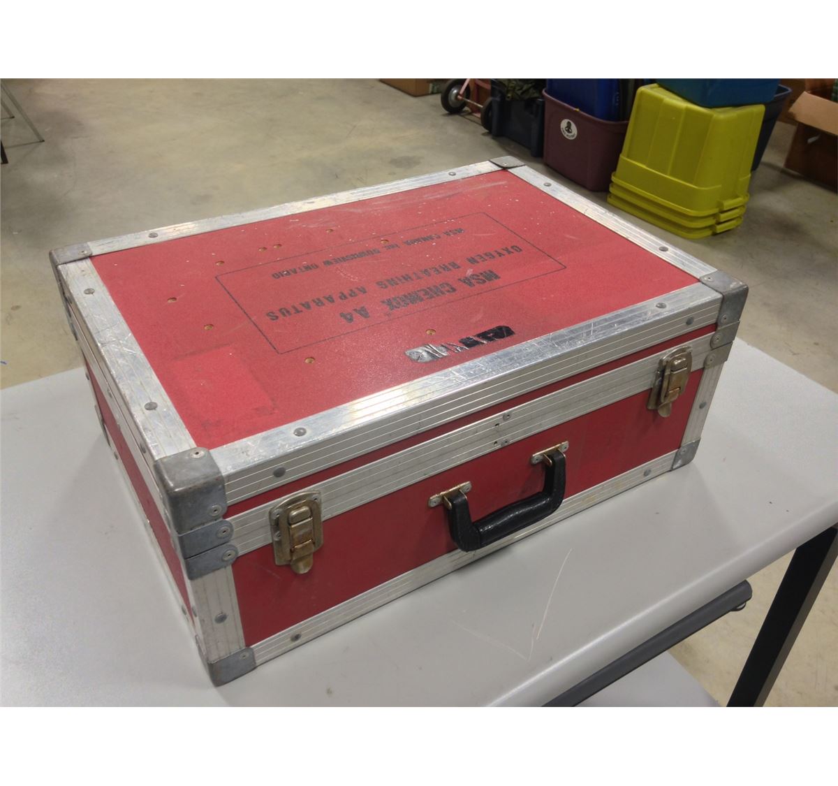 Comes in the original, MSA stamped heavy duty protective red box with hoses, mask, strapping and harness